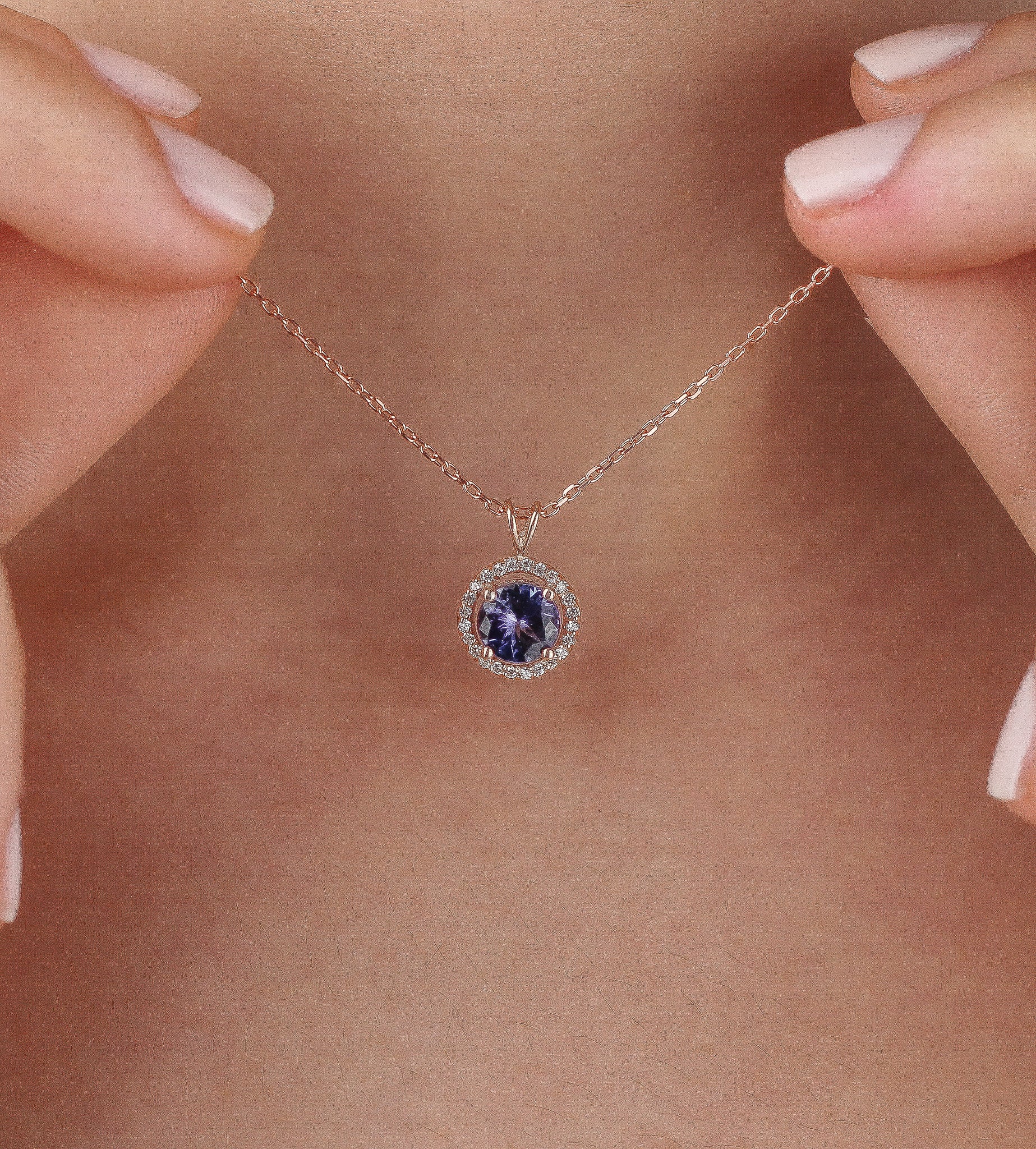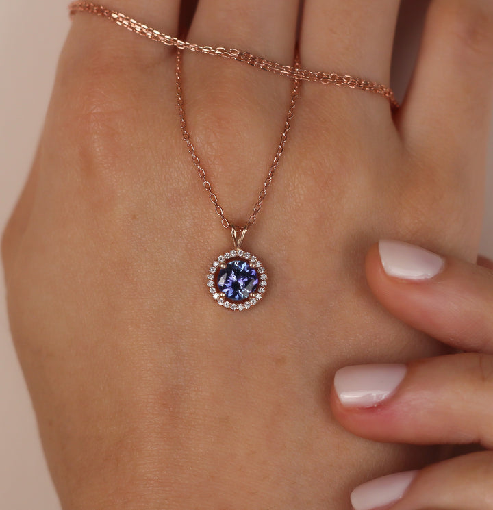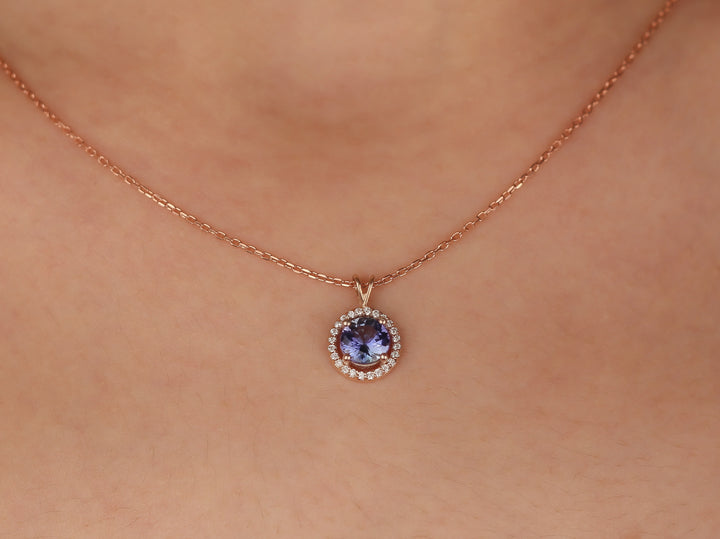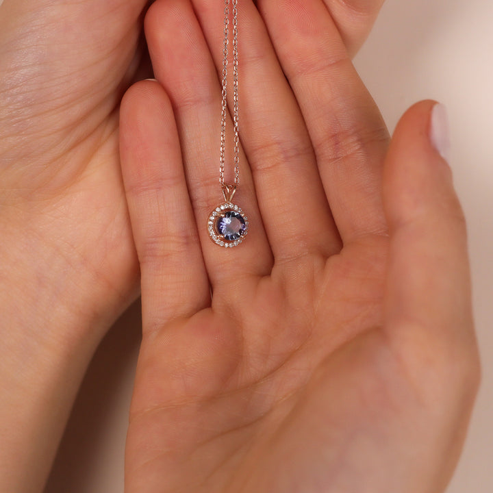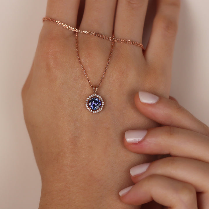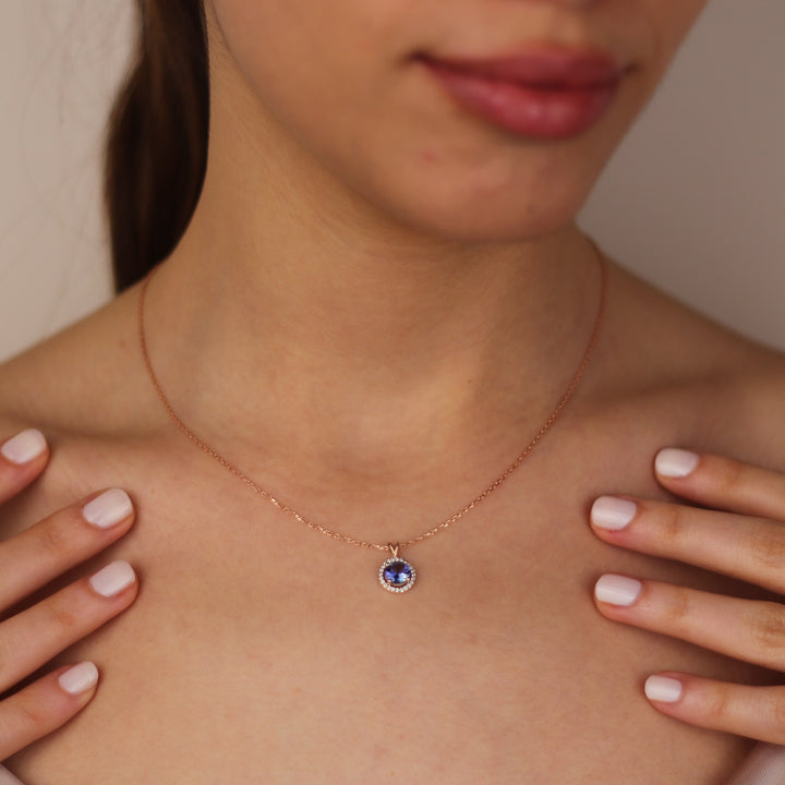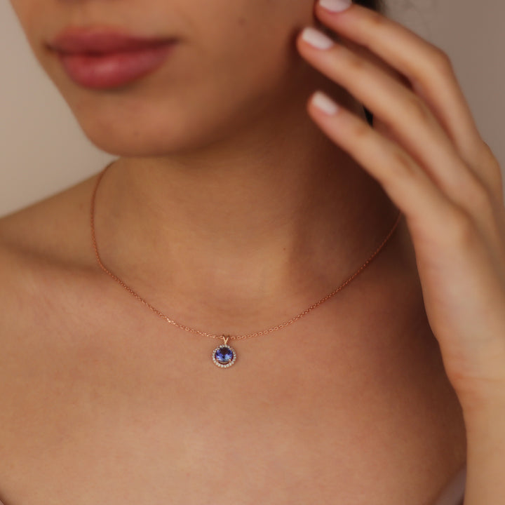 TANYA Natural Tanzanite Necklace | 925K Silver & Gold Options with Zircon or Diamond Halo Necklace