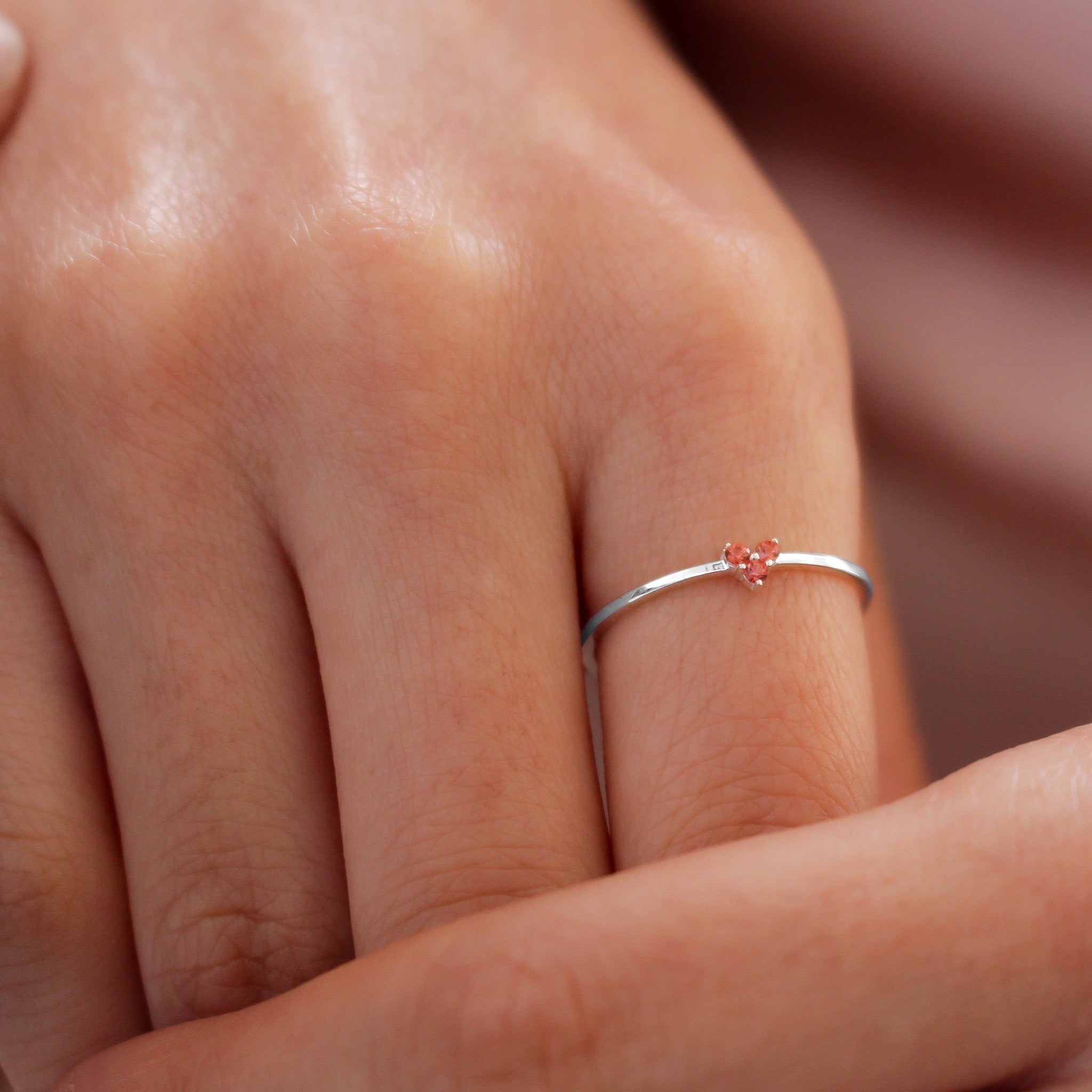 TIA Elegant Orange Sapphire Heart Ring in 925K Sterling Silver or Solid Gold | Tiny Heart Sapphire Proposal Ring