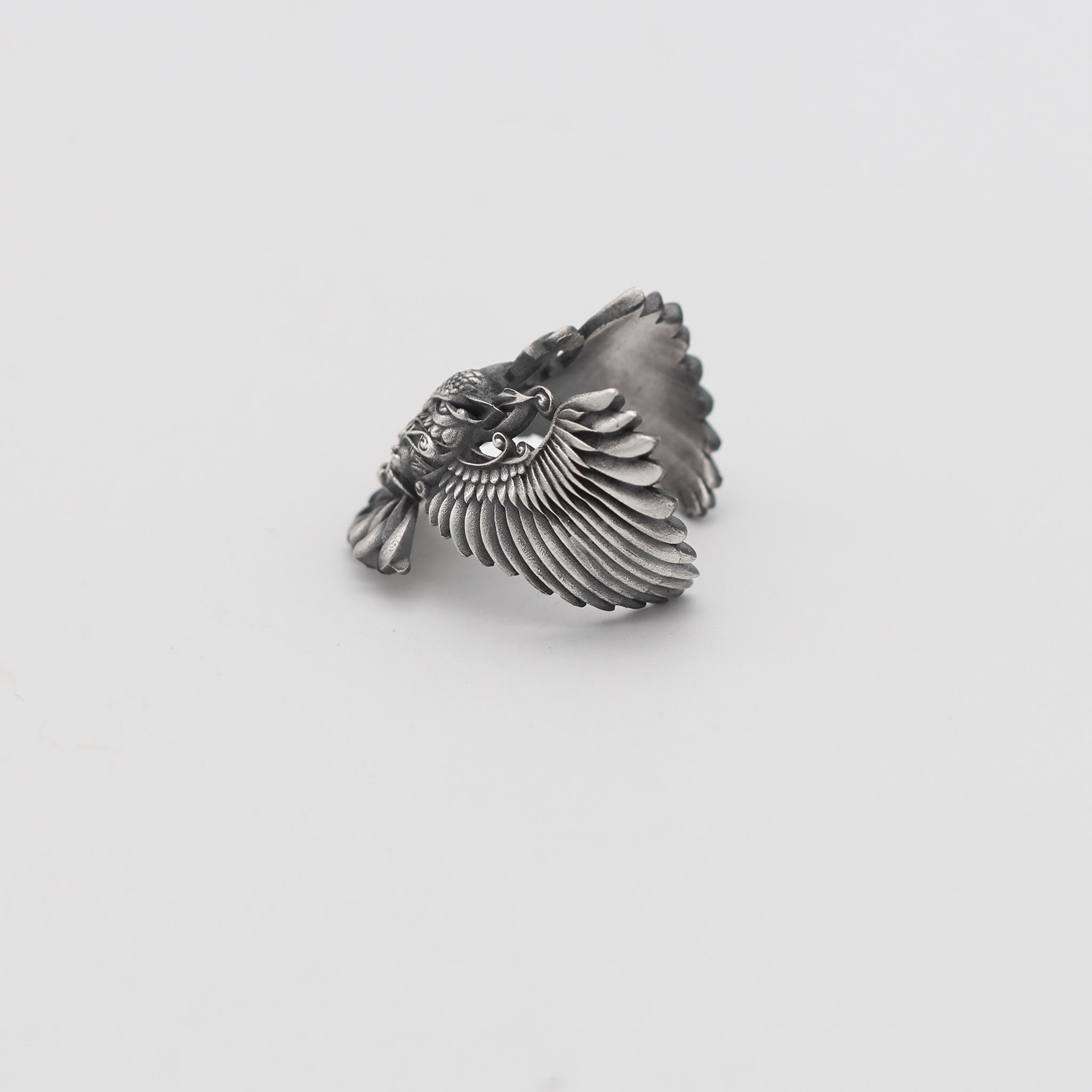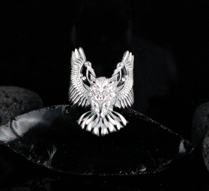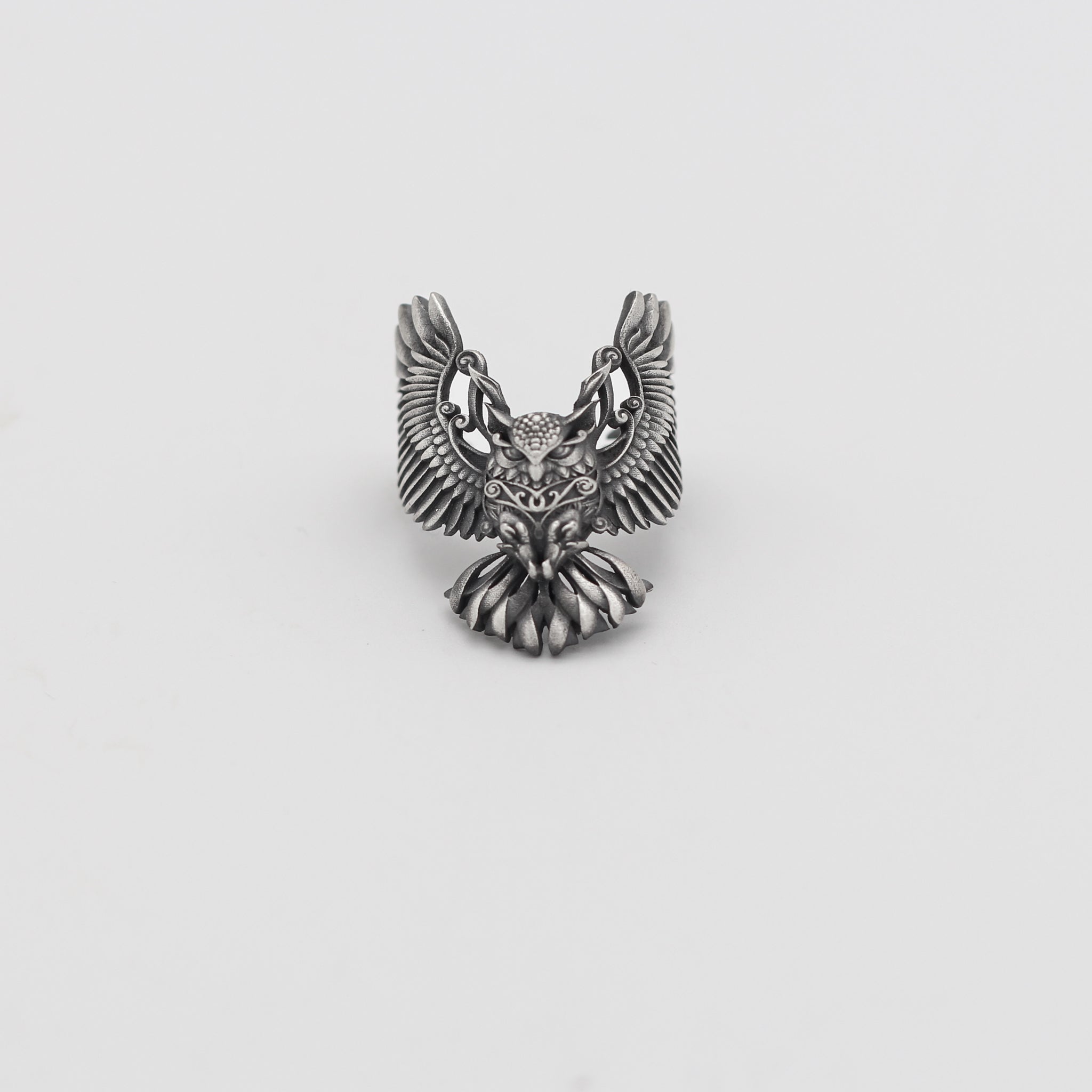 Owl Handmade Sterling Silver Men Ring, Wild Animal Ring For Men, Owl Ring