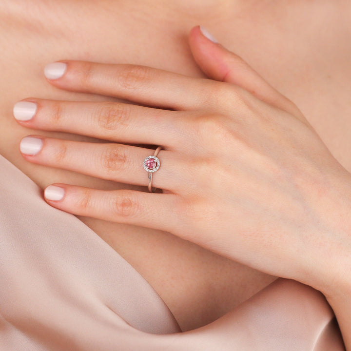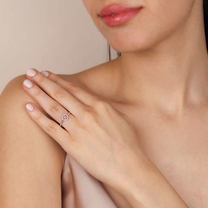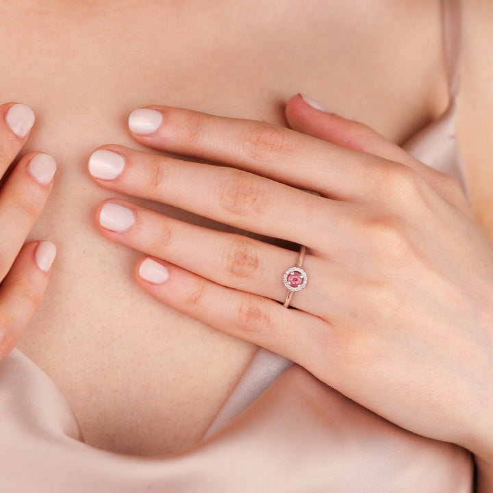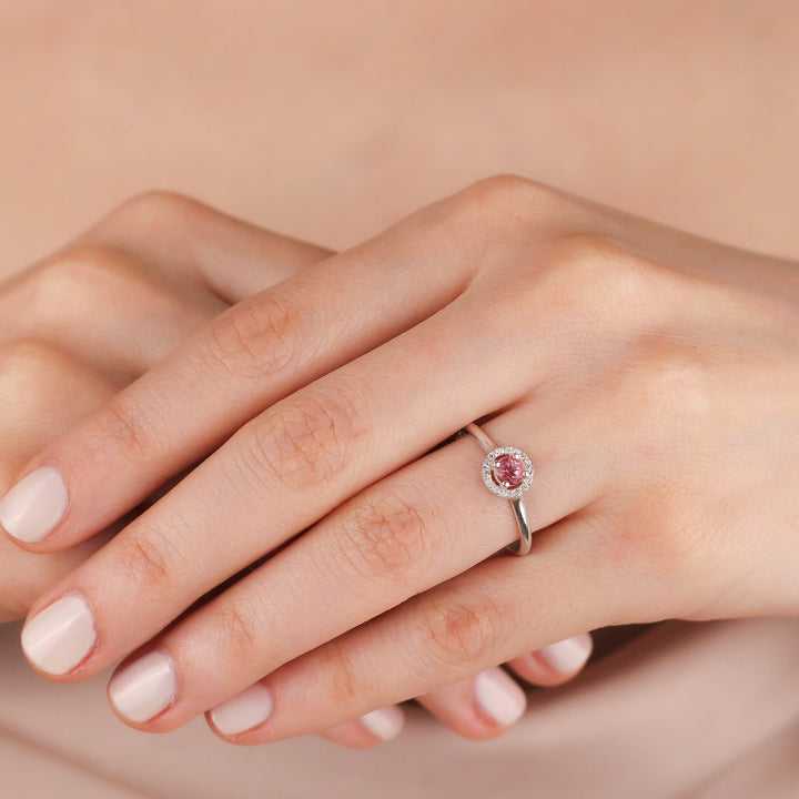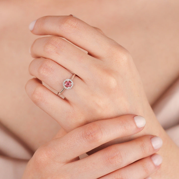 VIVIANA Dazzling Pink Topaz Halo Ring in 8K or 14K Solid Gold | Pink Topaz Solitaire Engagement Ring