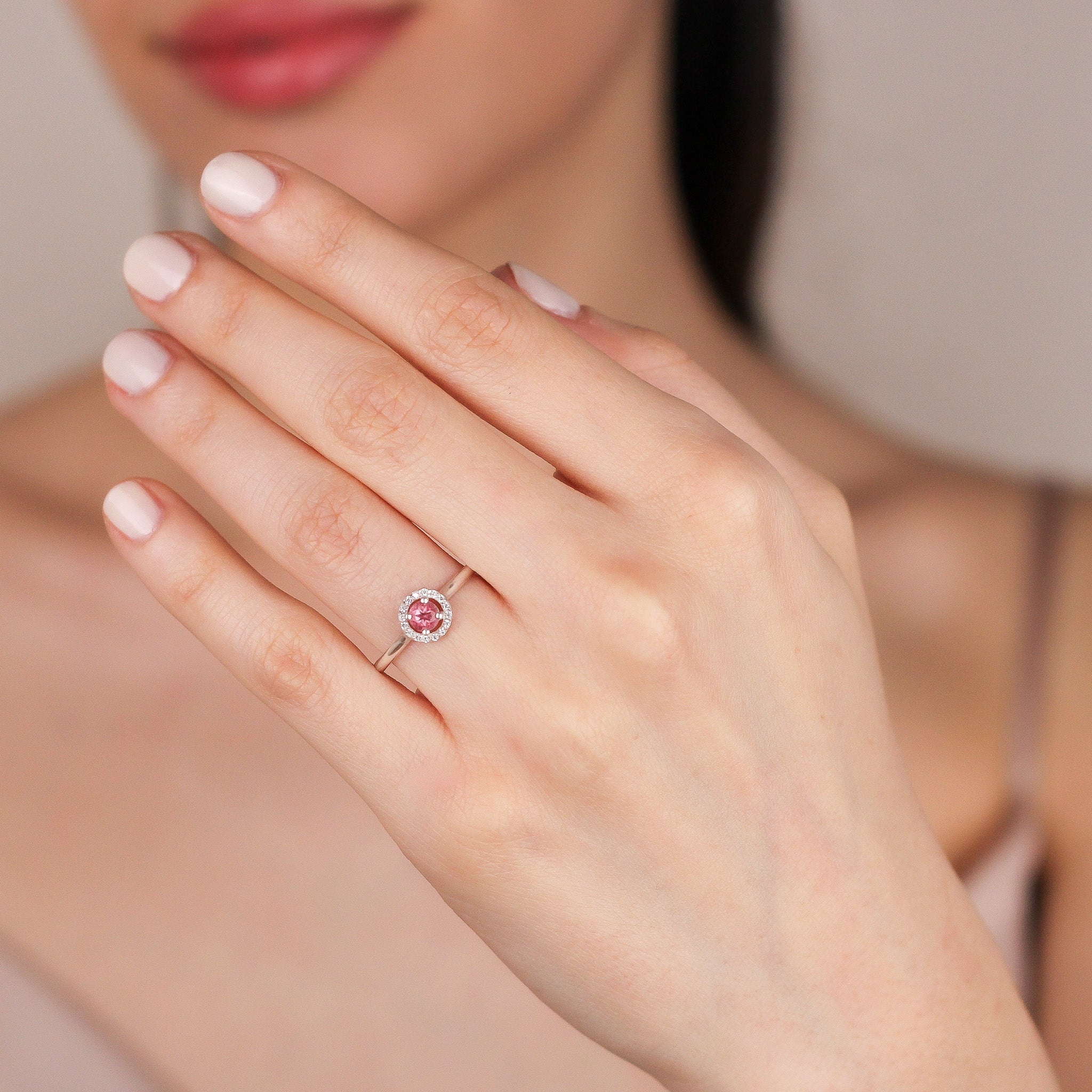 Elevate your style with this exquisite pink topaz halo ring, a masterpiece of fine craftsmanship. The stunning pink topaz at the center radiates charm, surrounded by a halo of sparkling white stones available in zircon or diamond. Set in your choice of 8K or 14K solid gold, this elegant piece is perfect for special occasions, romantic gestures, or simply adding a touch of sophistication to your jewelry collection.