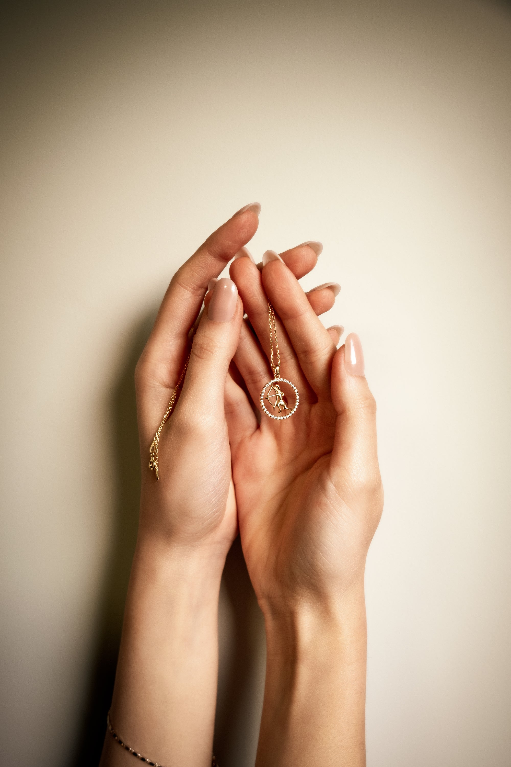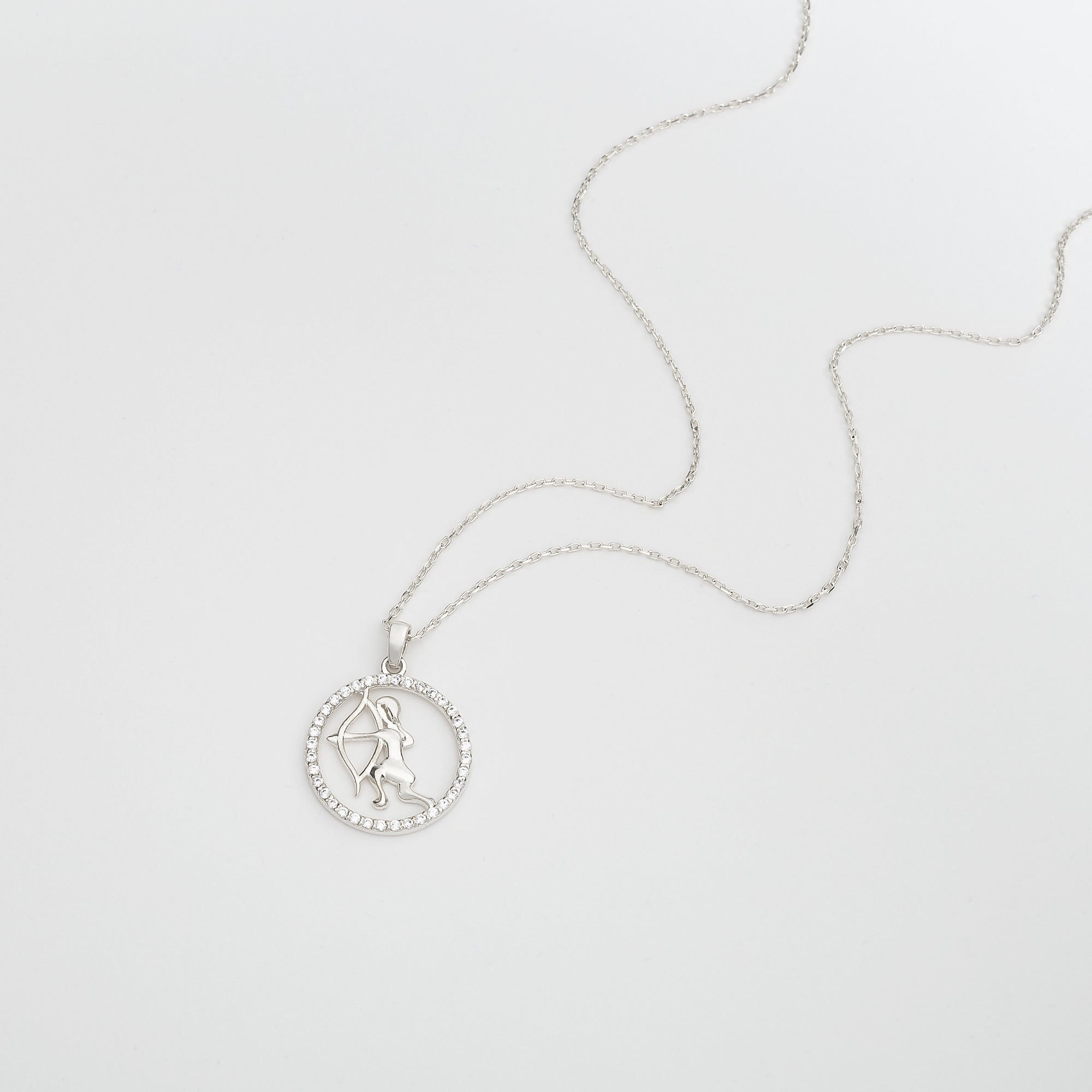 Celebrate the bold and adventurous nature of Sagittarius with this exquisite Sagittarius Zodiac Necklace, showcasing the Sagittarius symbol encircled by a radiant halo of diamonds or zircon stones. Available in 925K sterling silver, 8K solid gold, or 14K solid gold, this pendant captures the spirit of the archer with elegance and sophistication. Perfect for astrology enthusiasts or as a unique gift, this necklace is both meaningful and timeless.