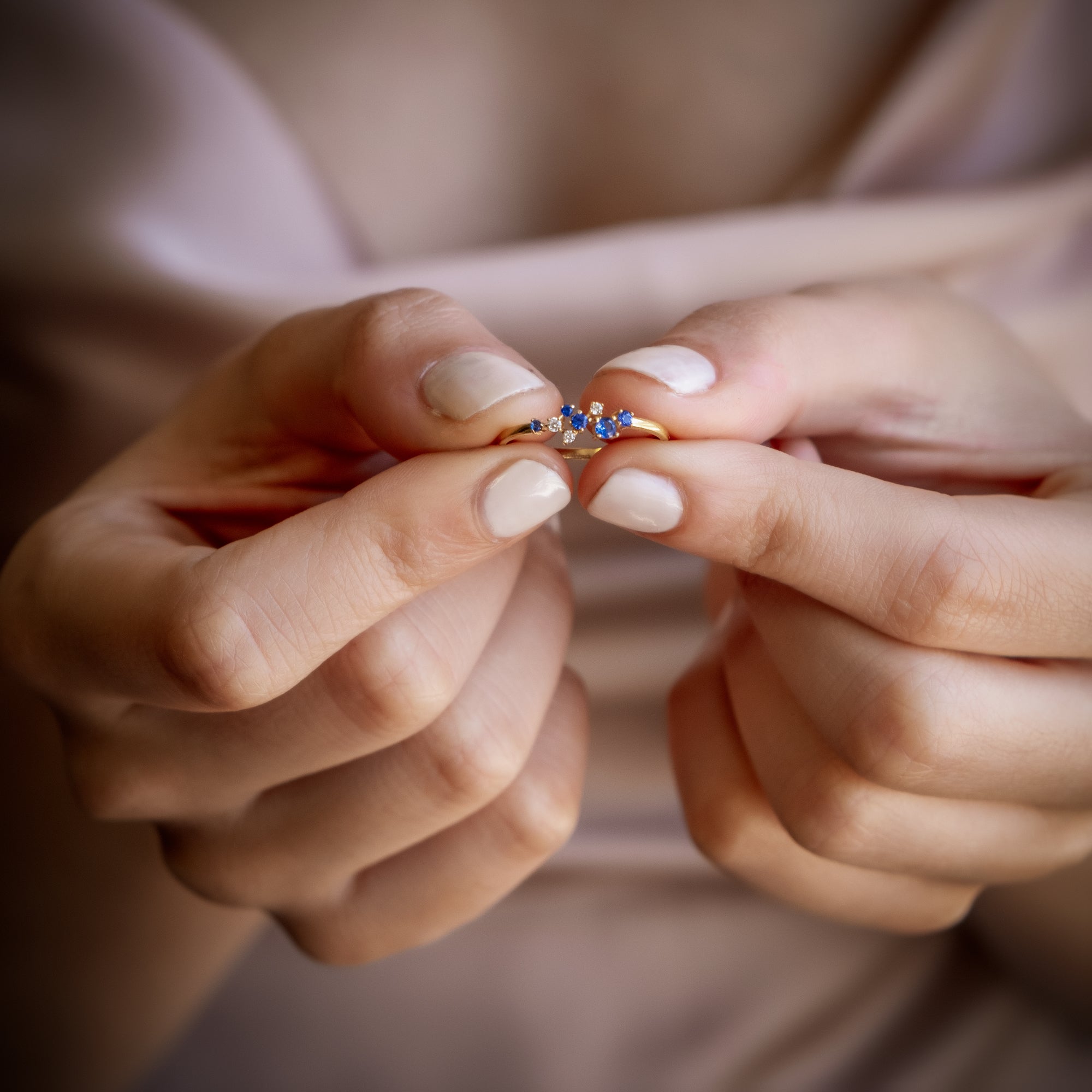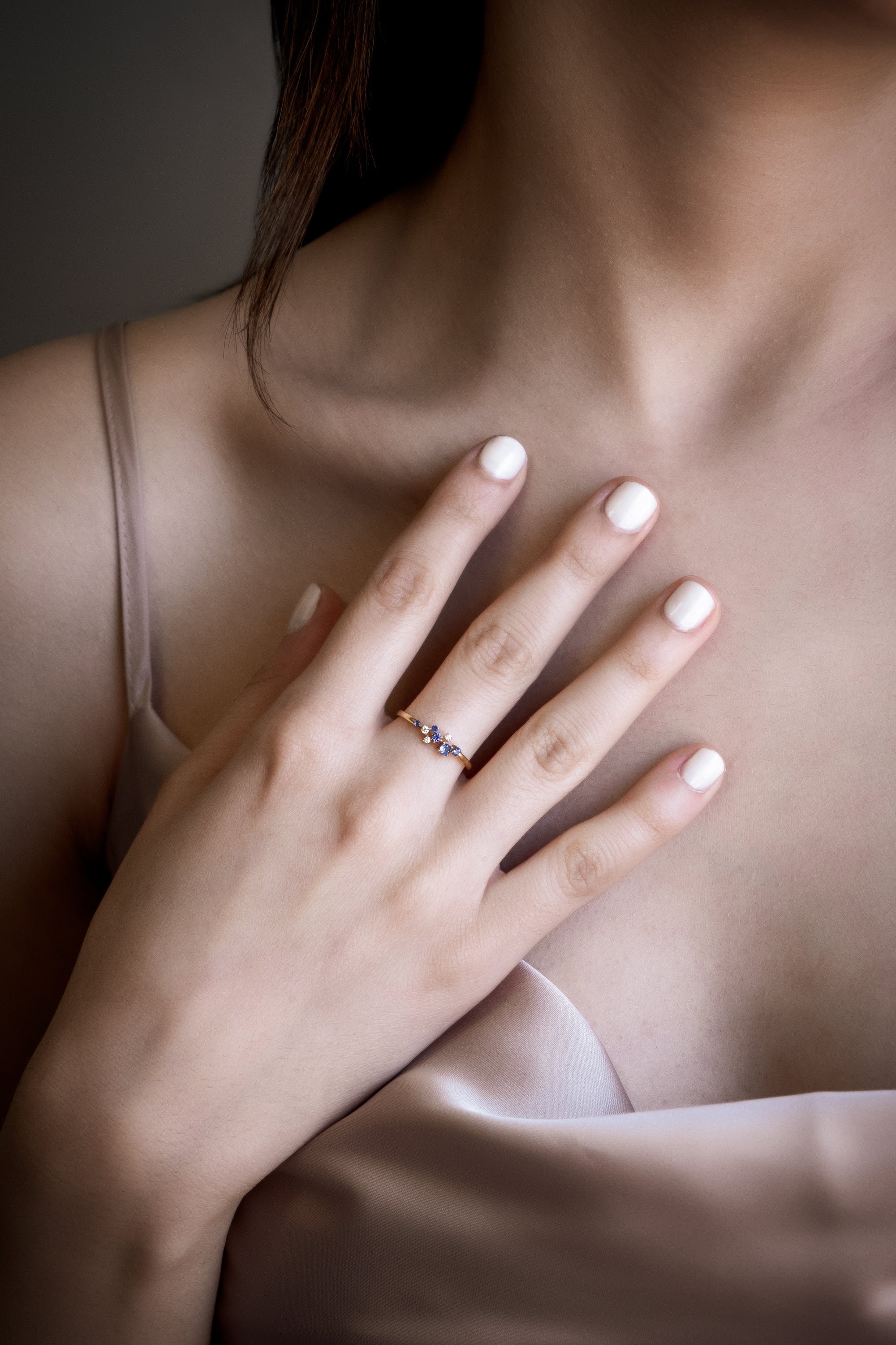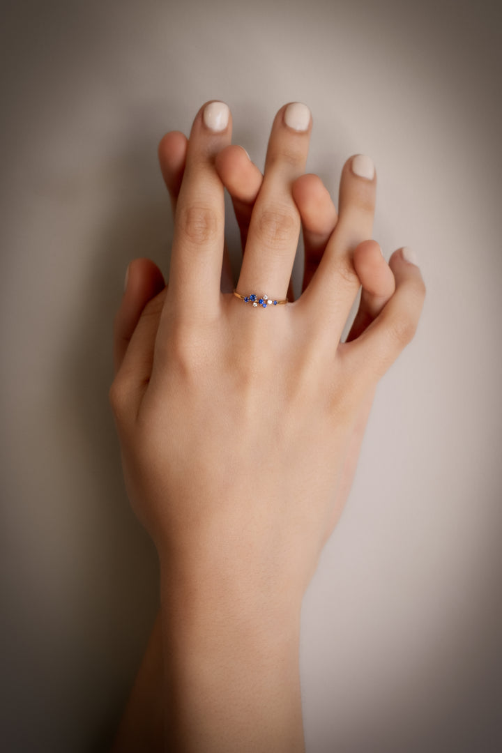 ISOLDE Exquisite Sapphire and Diamond Cluster Ring in 8K or 14K Solid Gold | Elegant and Dainty Fine Jewelry