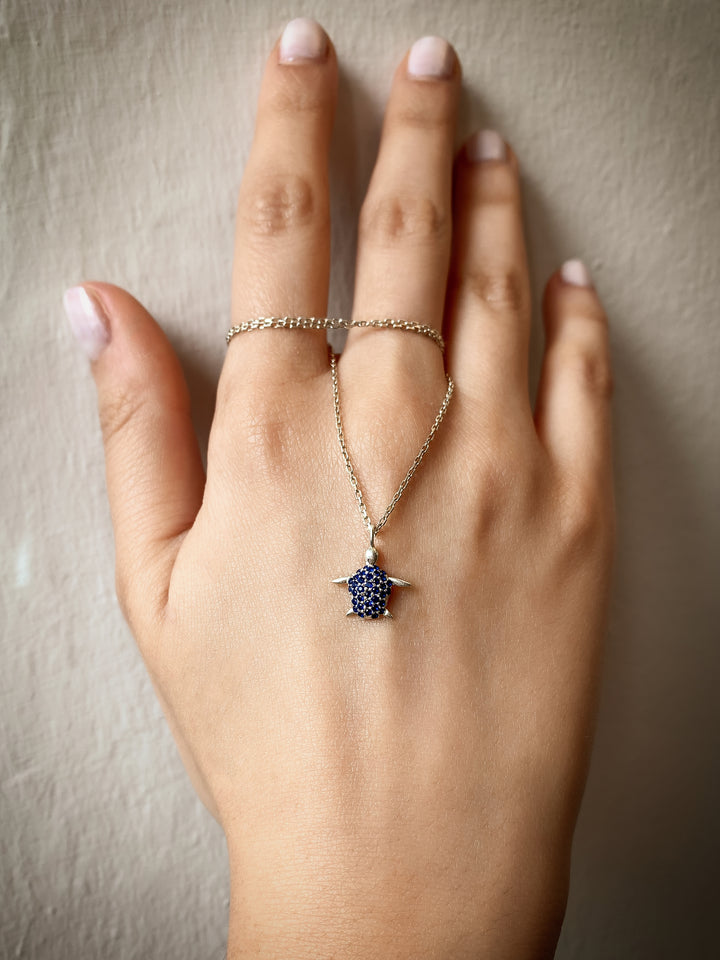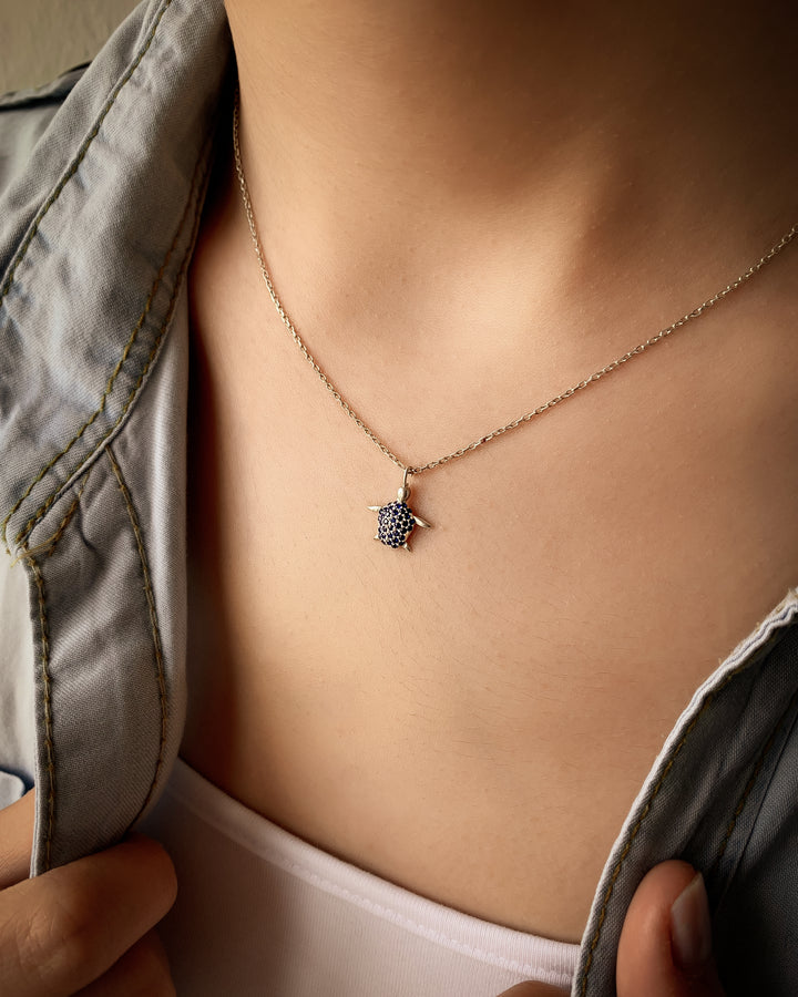 Celebrate elegance and nature with this exquisite Sapphire Turtle Necklace, featuring a captivating turtle design adorned with rich sapphire stones and shimmering zircon accents. Crafted with care in 925K sterling silver, 8K solid gold, or 14K solid gold, this pendant makes a unique gift for nature enthusiasts or a luxurious addition to your jewelry collection. Perfect for any special occasion or simply as a symbol of longevity and beauty.