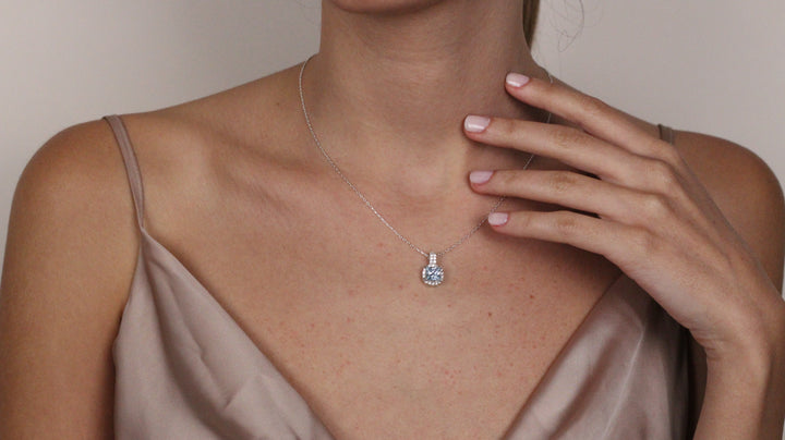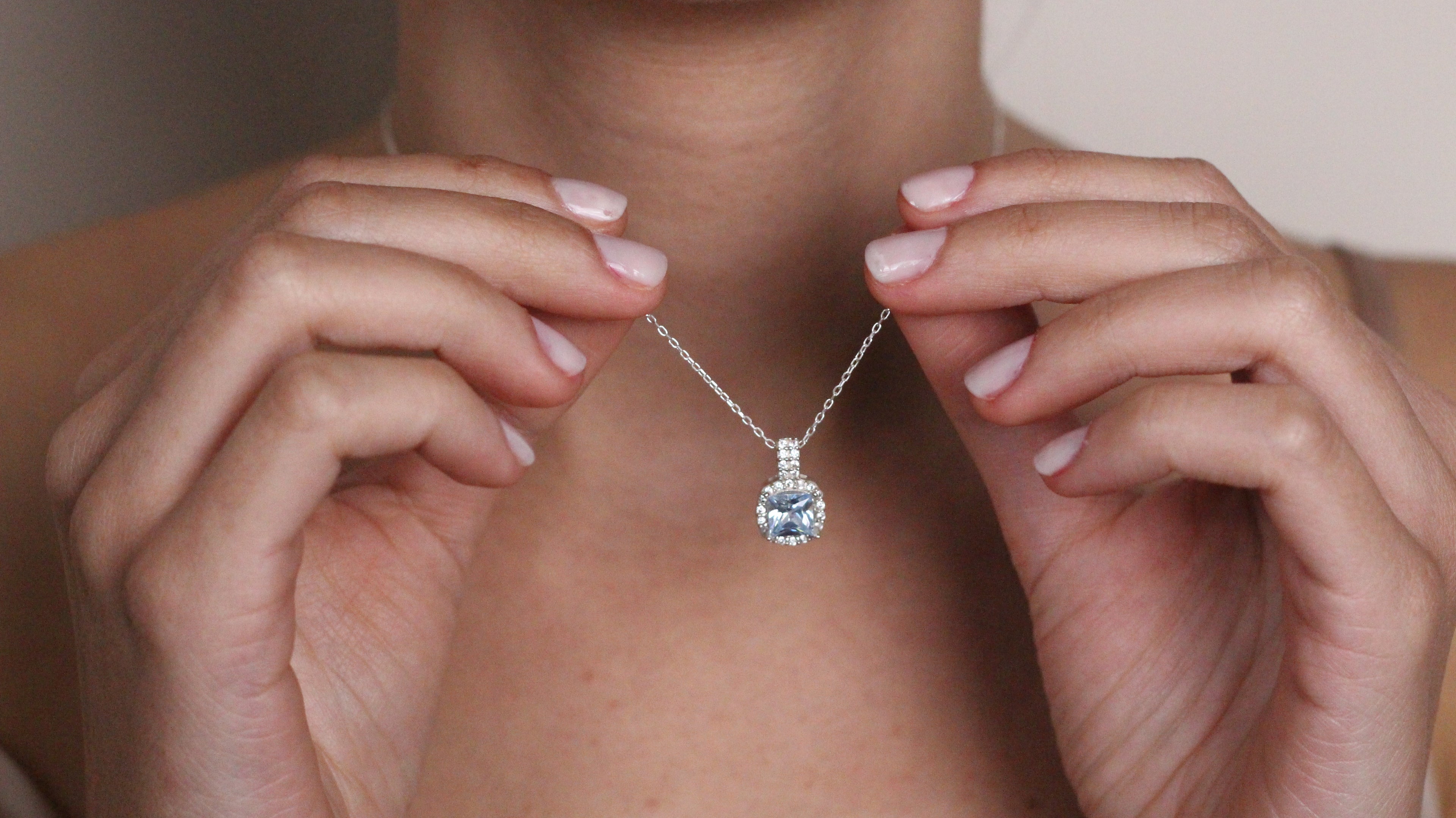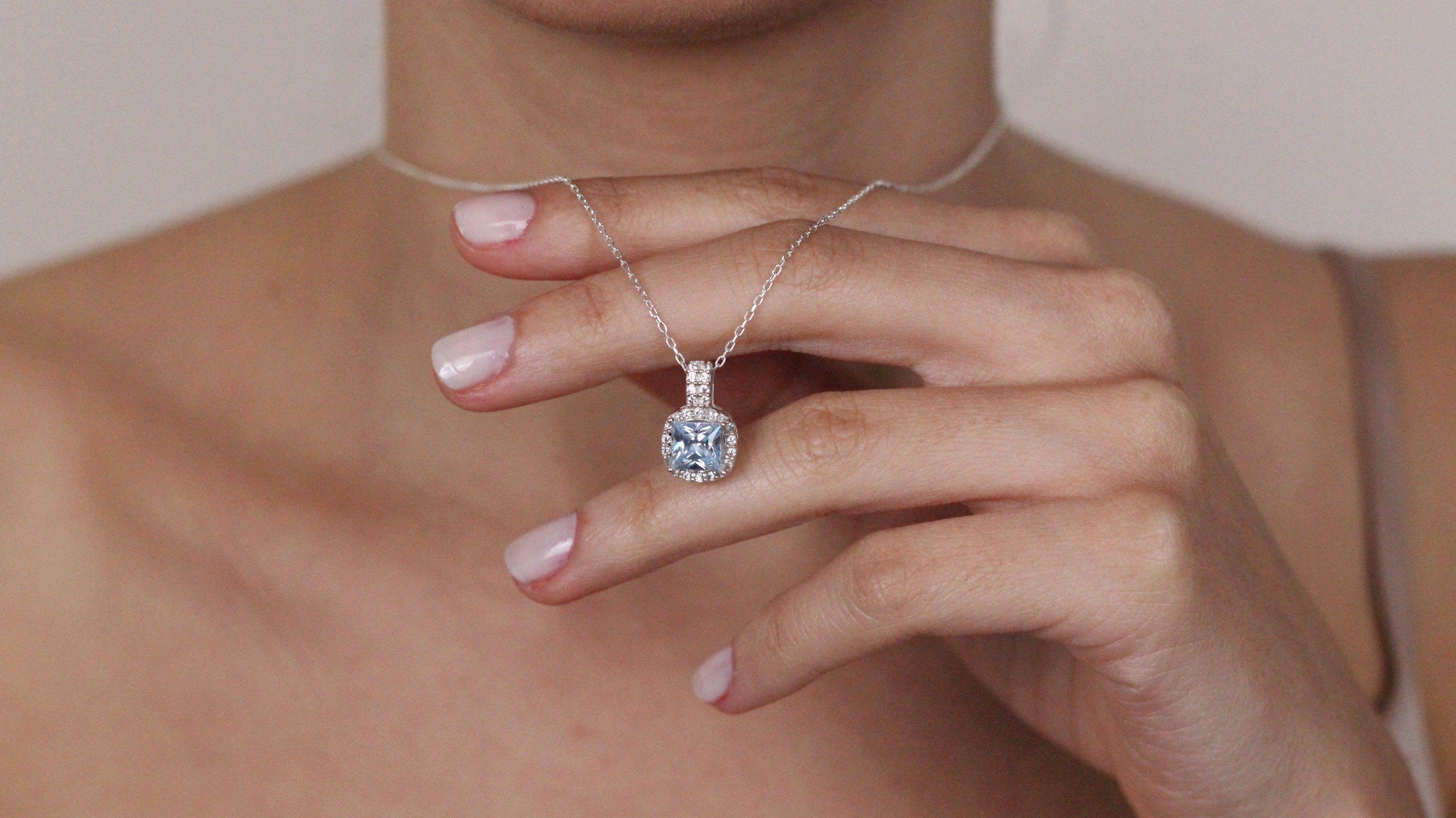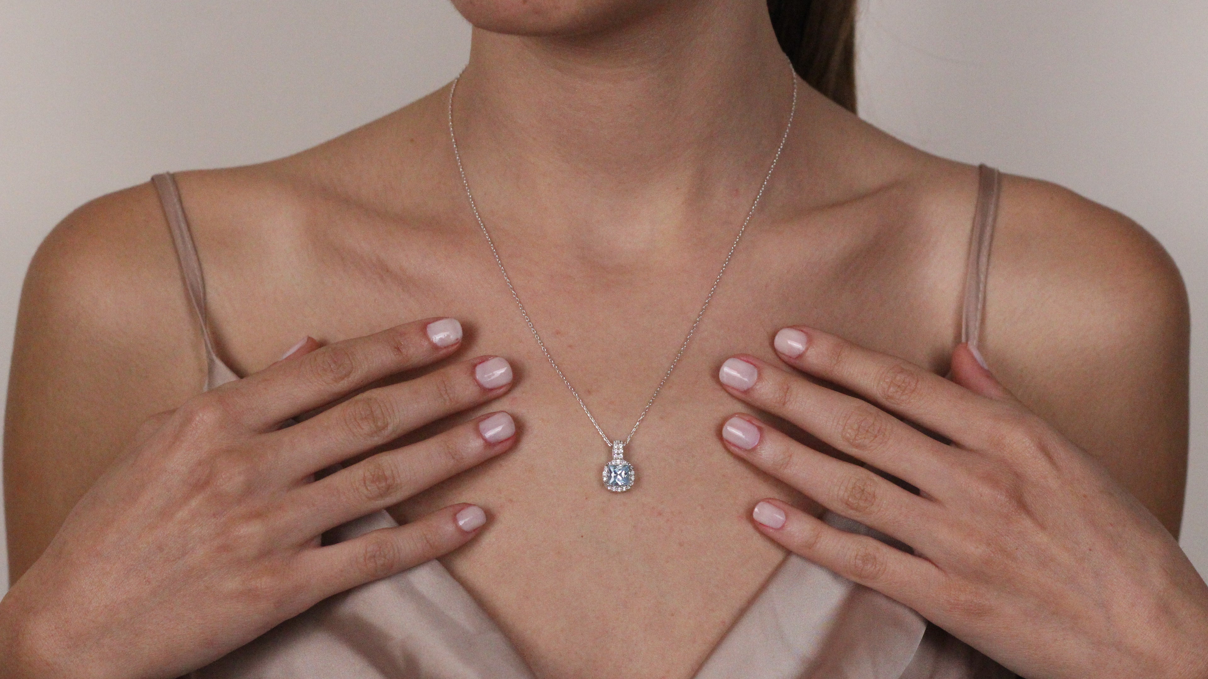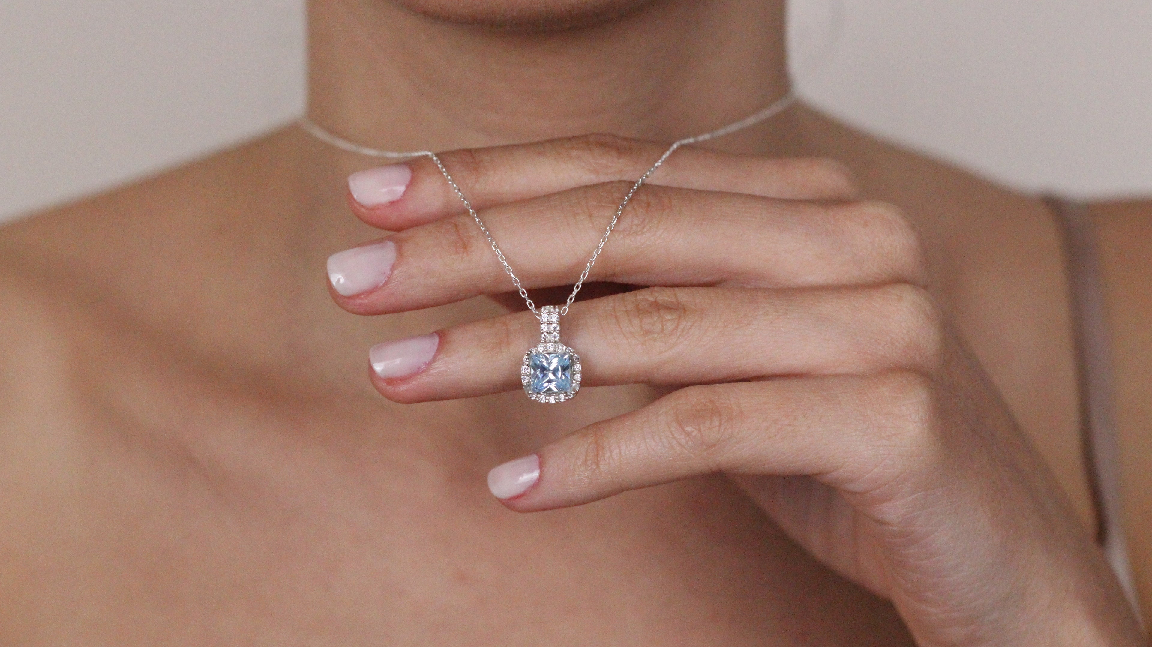 Solid 14K Gold Natural London CZ Blue Topaz Pendant | Cushion Cut Halo Necklace | December Birthstone Jewelry