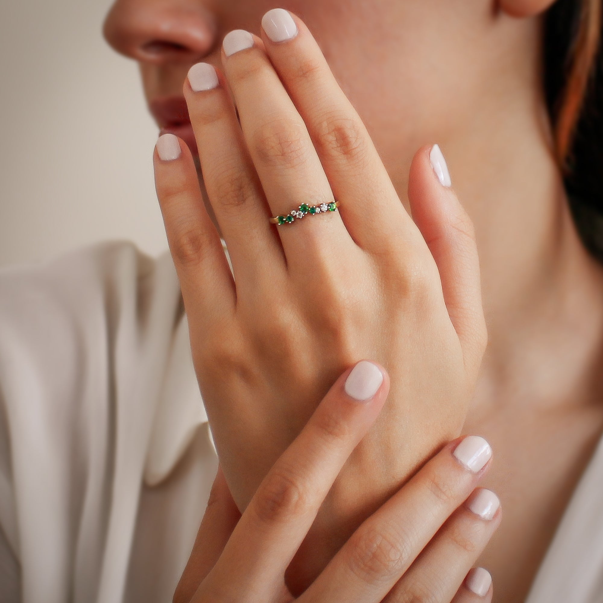 COSETTE Elegant Solid Gold Ring with Lush Emerald Stones | Handmade Emerald Jewelry for Women
