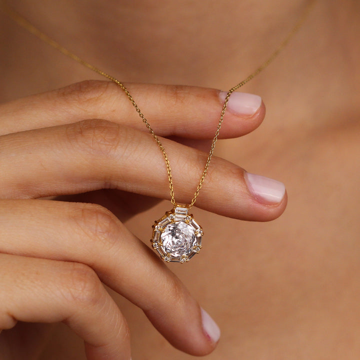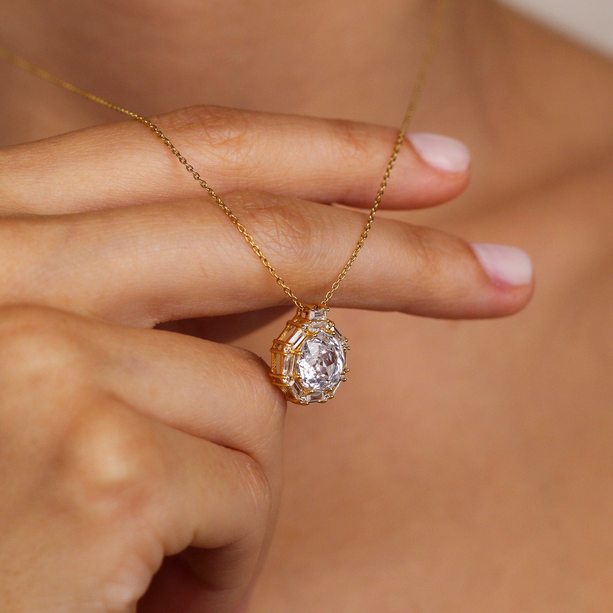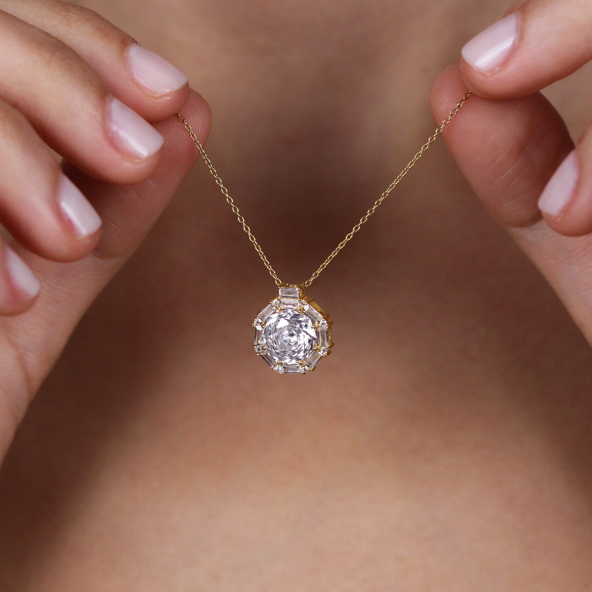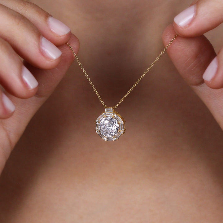 Radiate elegance with this exquisite Natural CZ Diamond Necklace, the perfect blend of sophistication and luxury. Featuring a stunning CZ diamond at its heart, surrounded by shimmering zircon stones, this necklace is available in 14K or 8K solid gold. Ideal as a bridal accessory, an anniversary gift, or a timeless piece for any special occasion, this necklace is designed to capture hearts and elevate any look.