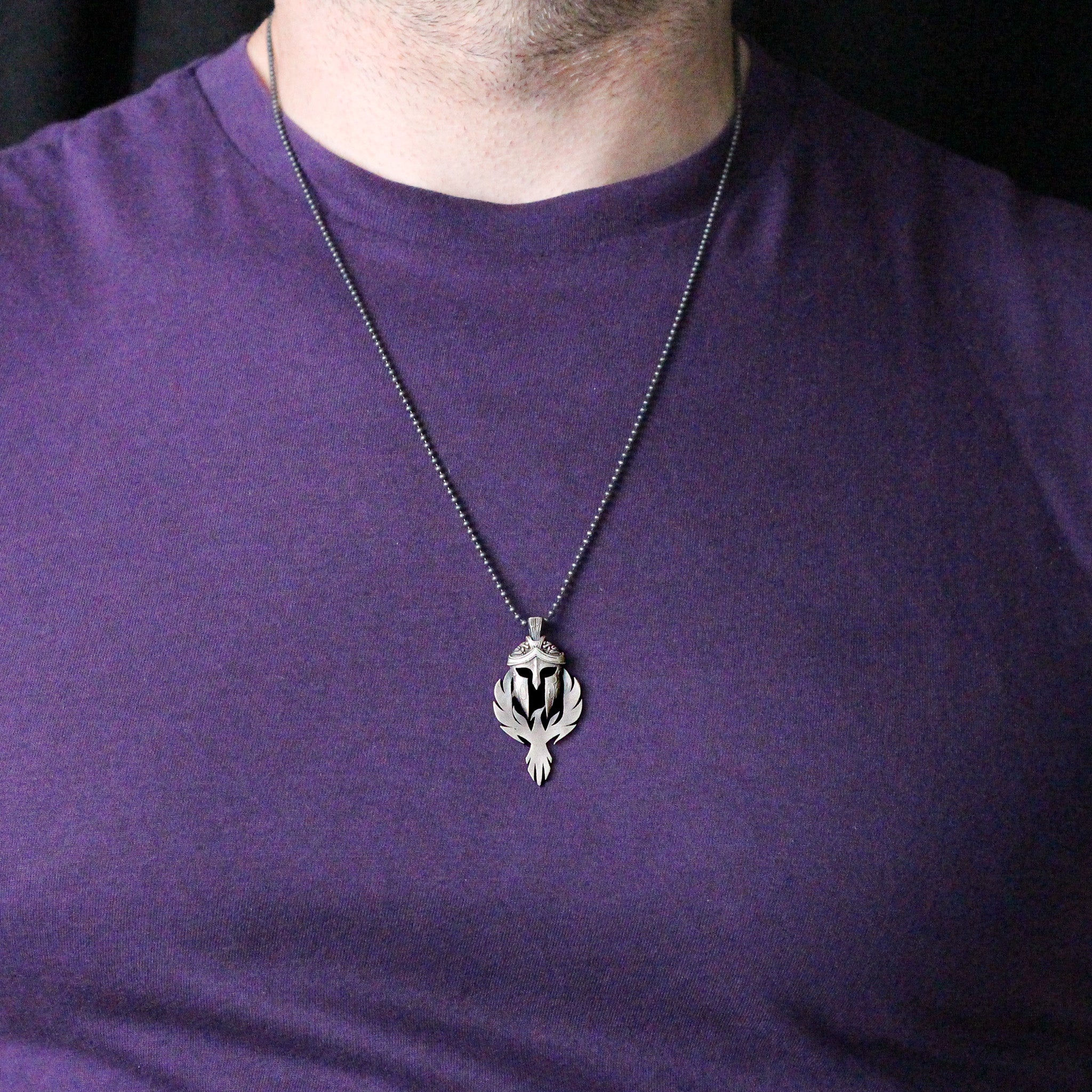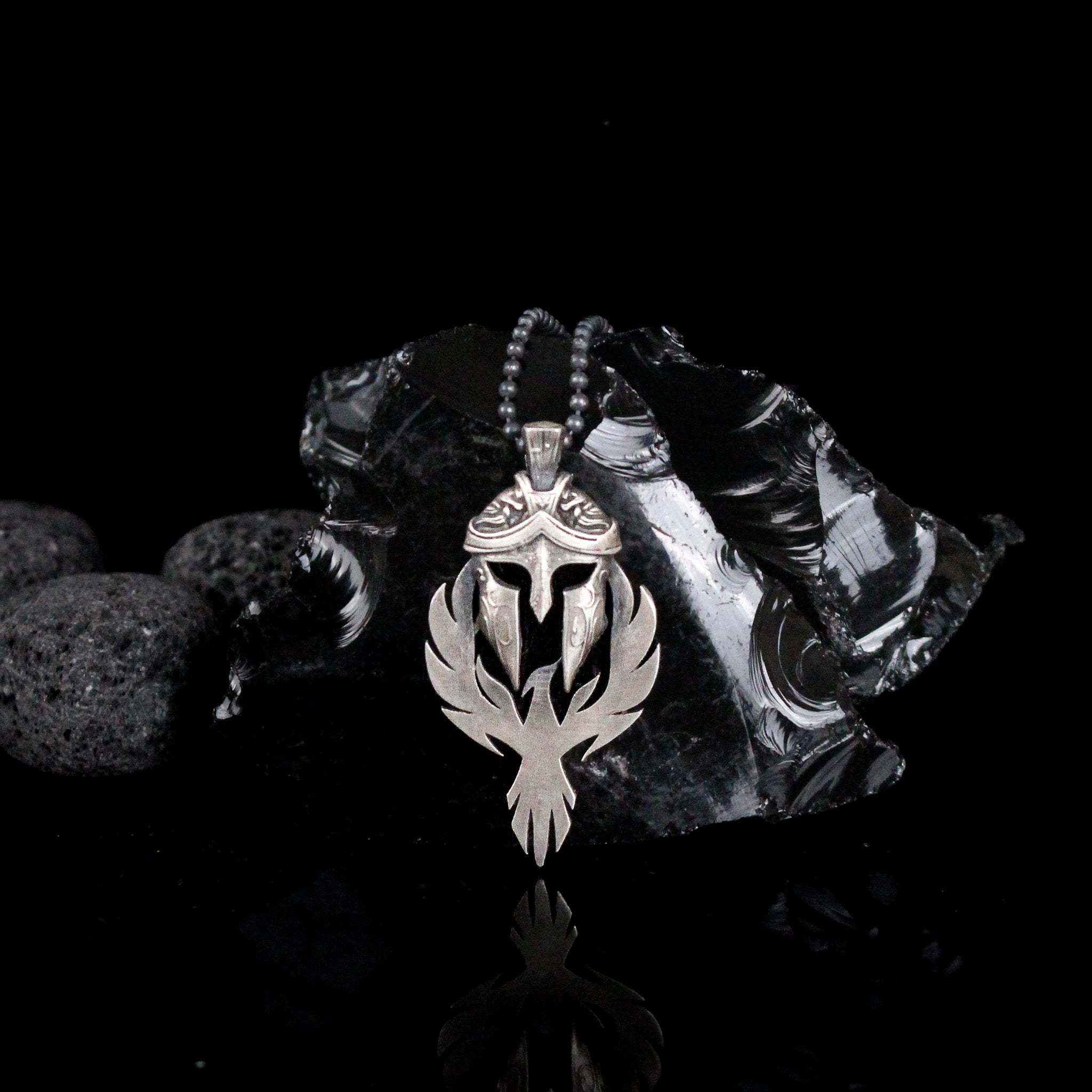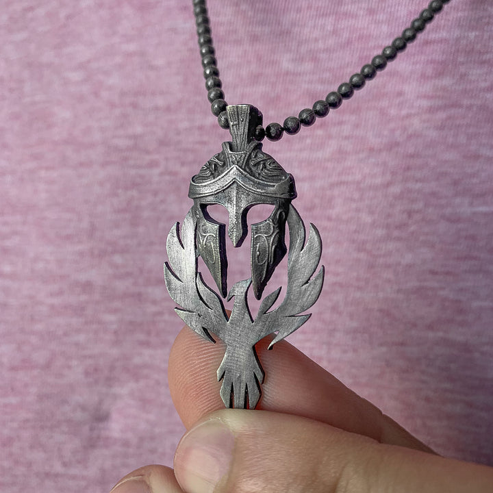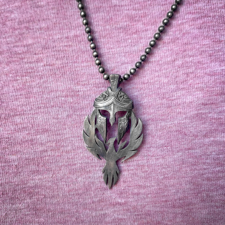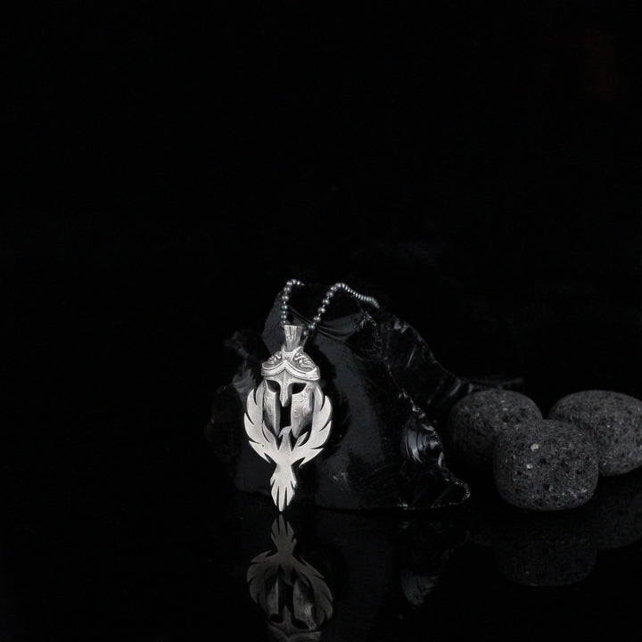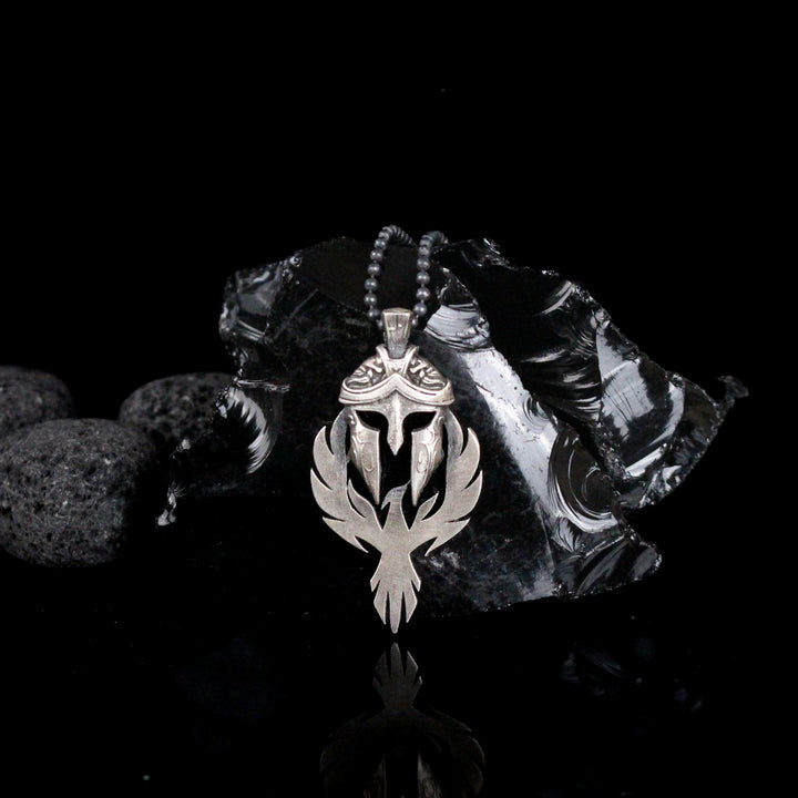 Spartan Warrior Helmet and Phoenix Necklace | 925K Sterling Silver Bold Statement Necklace