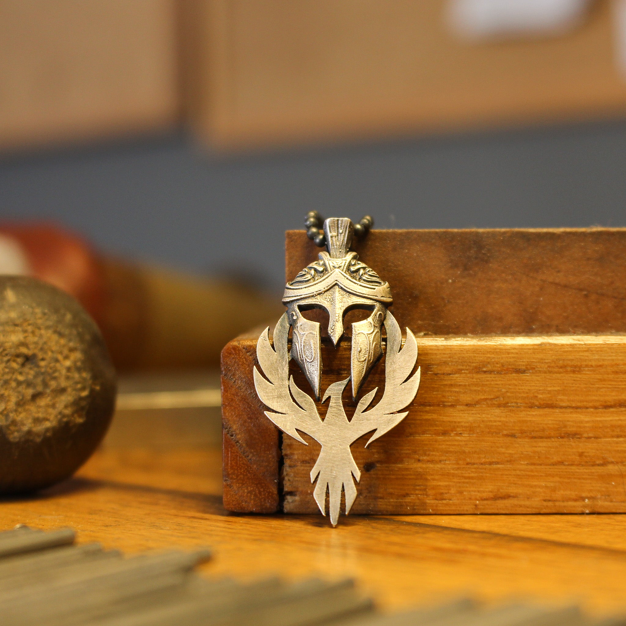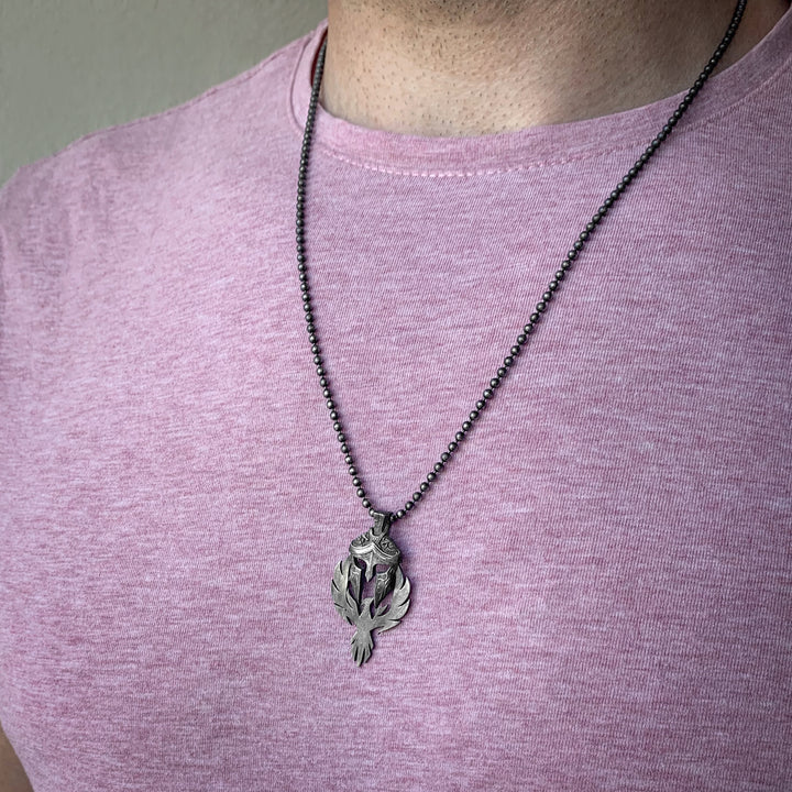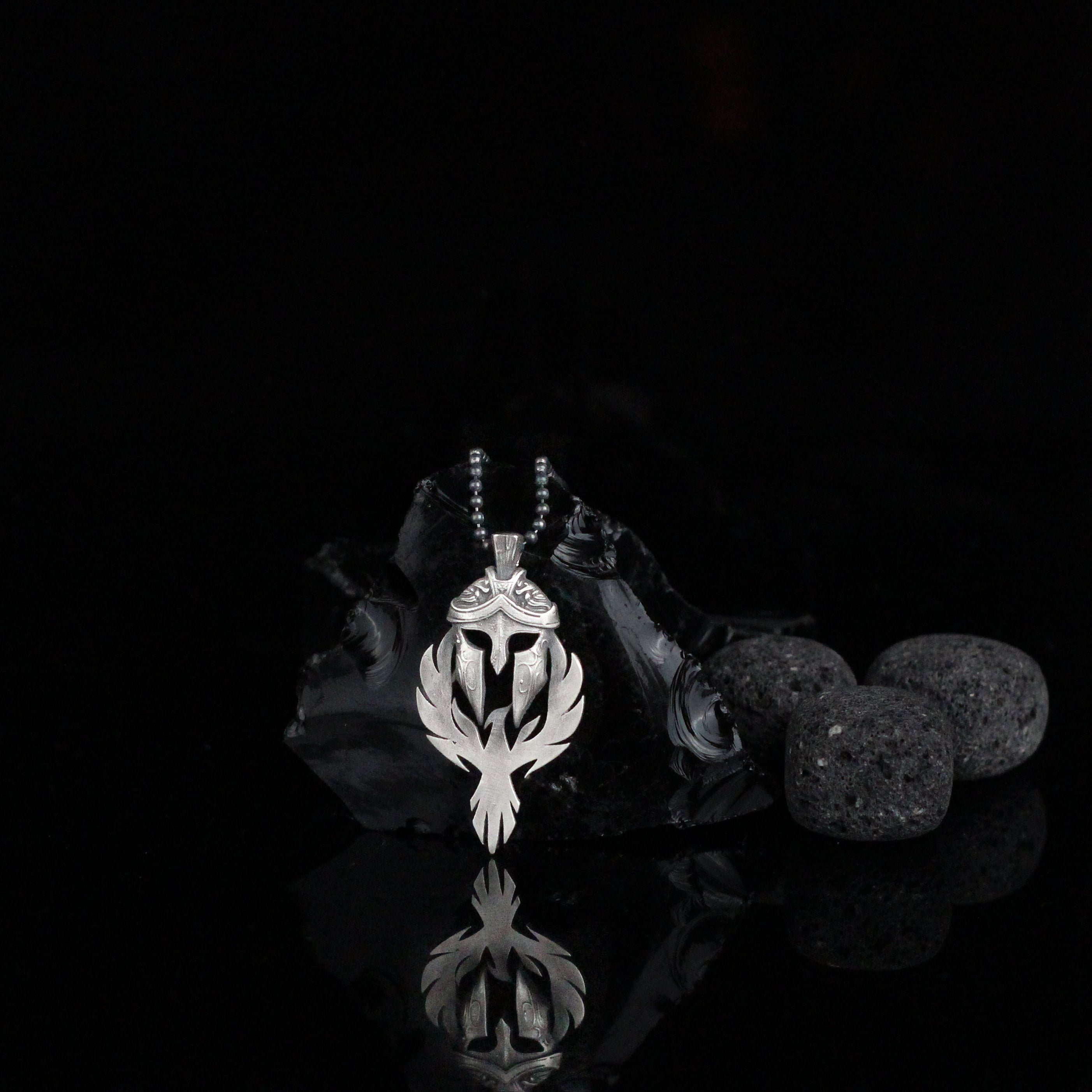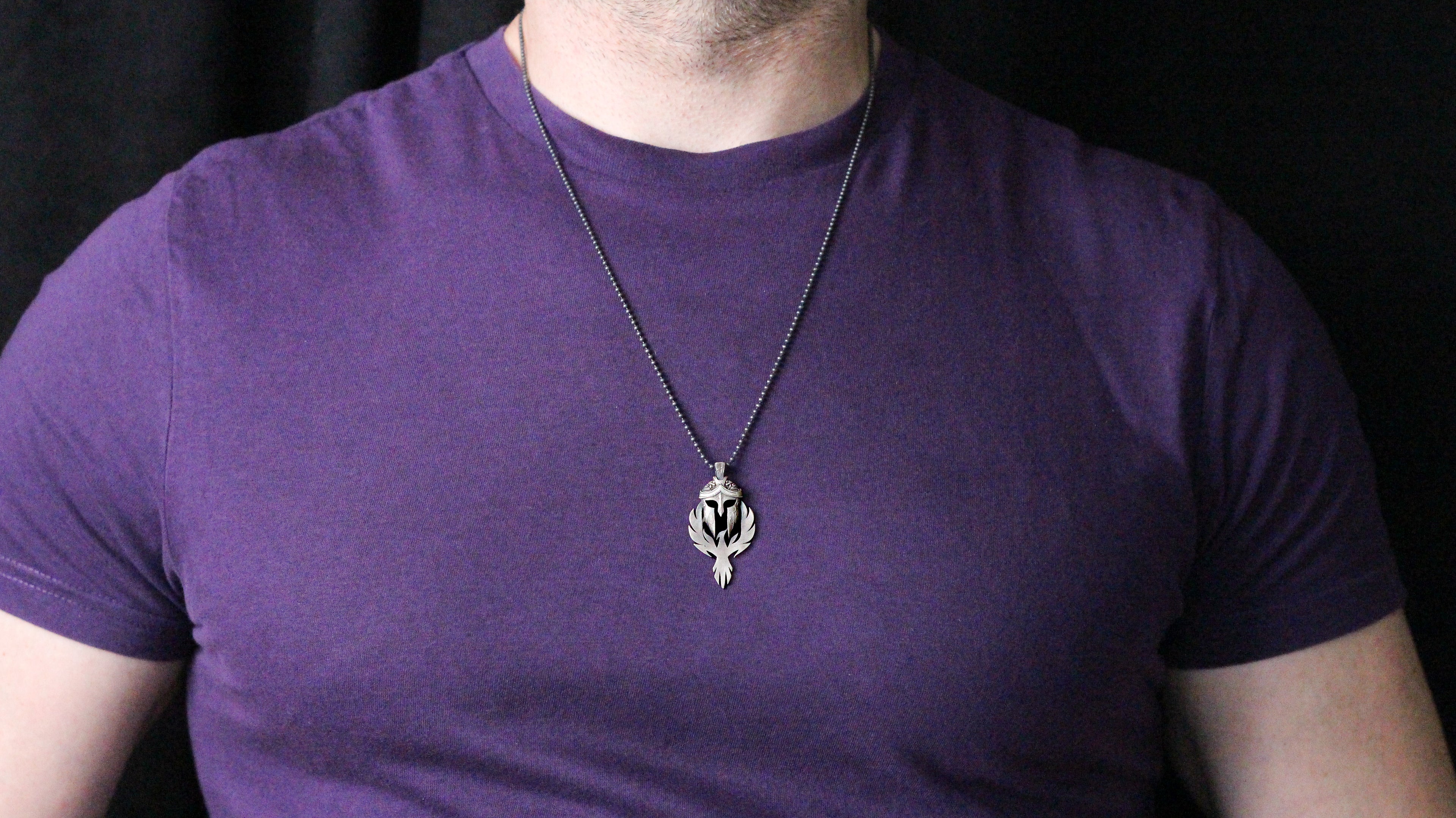 Spartan Warrior Helmet and Phoenix Necklace | 925K Sterling Silver Bold Statement Necklace