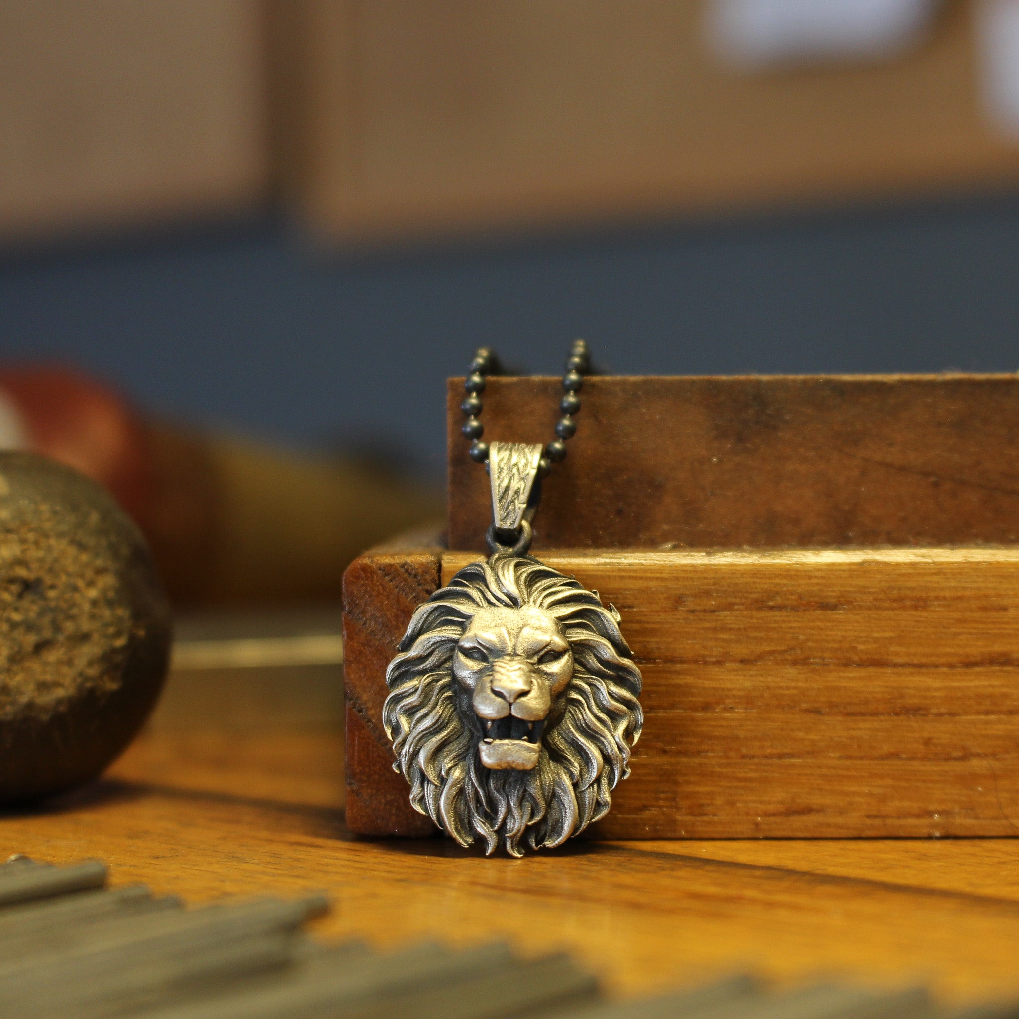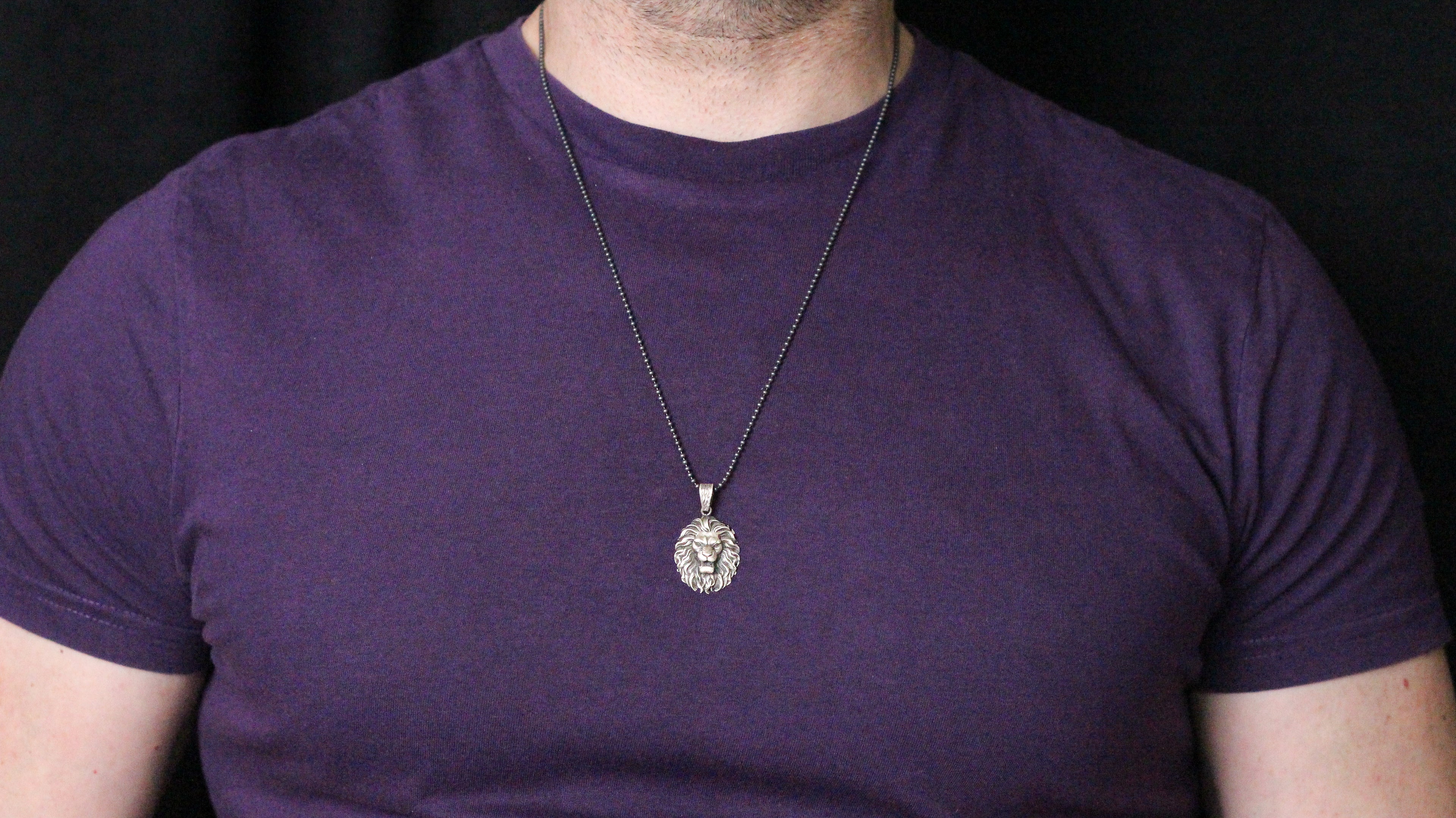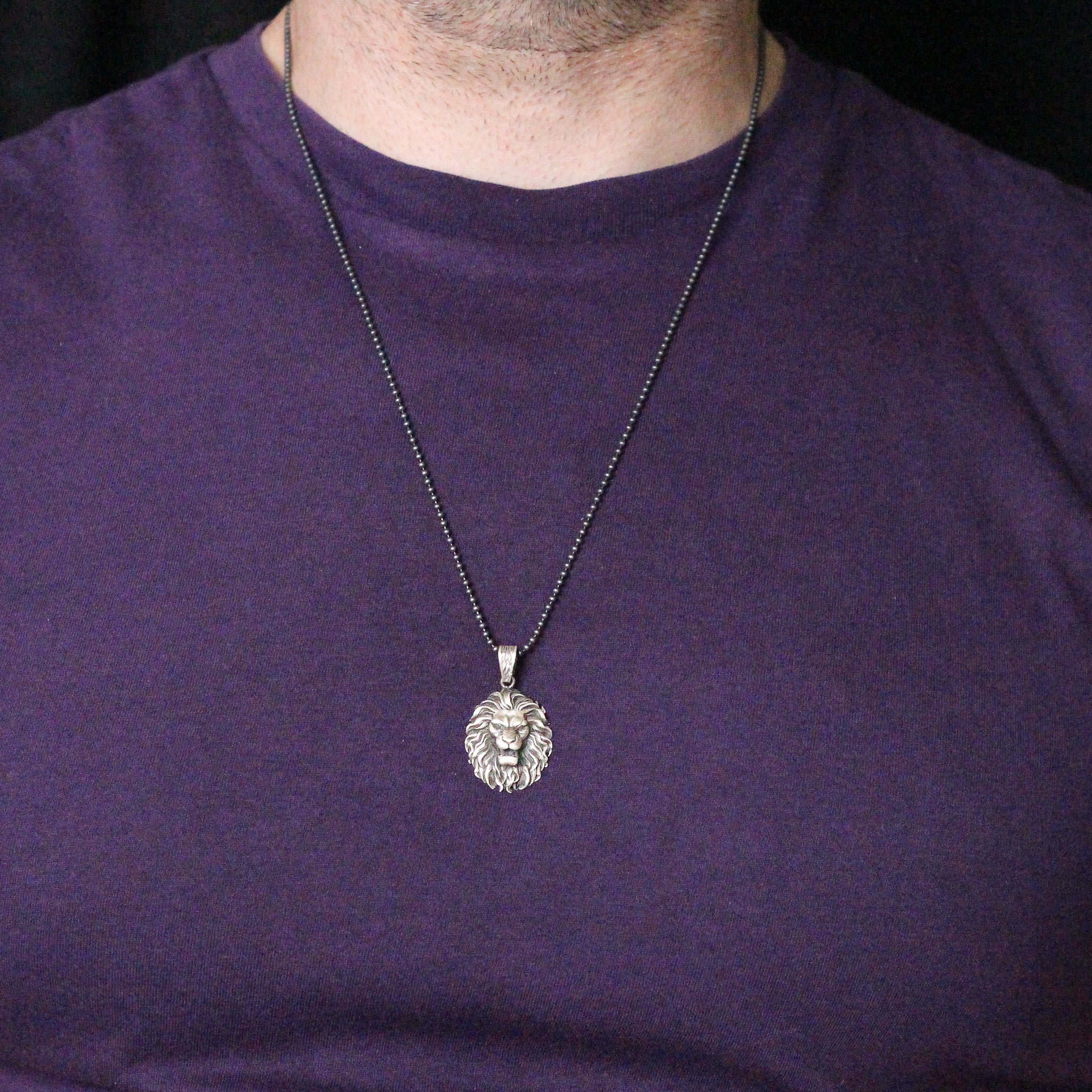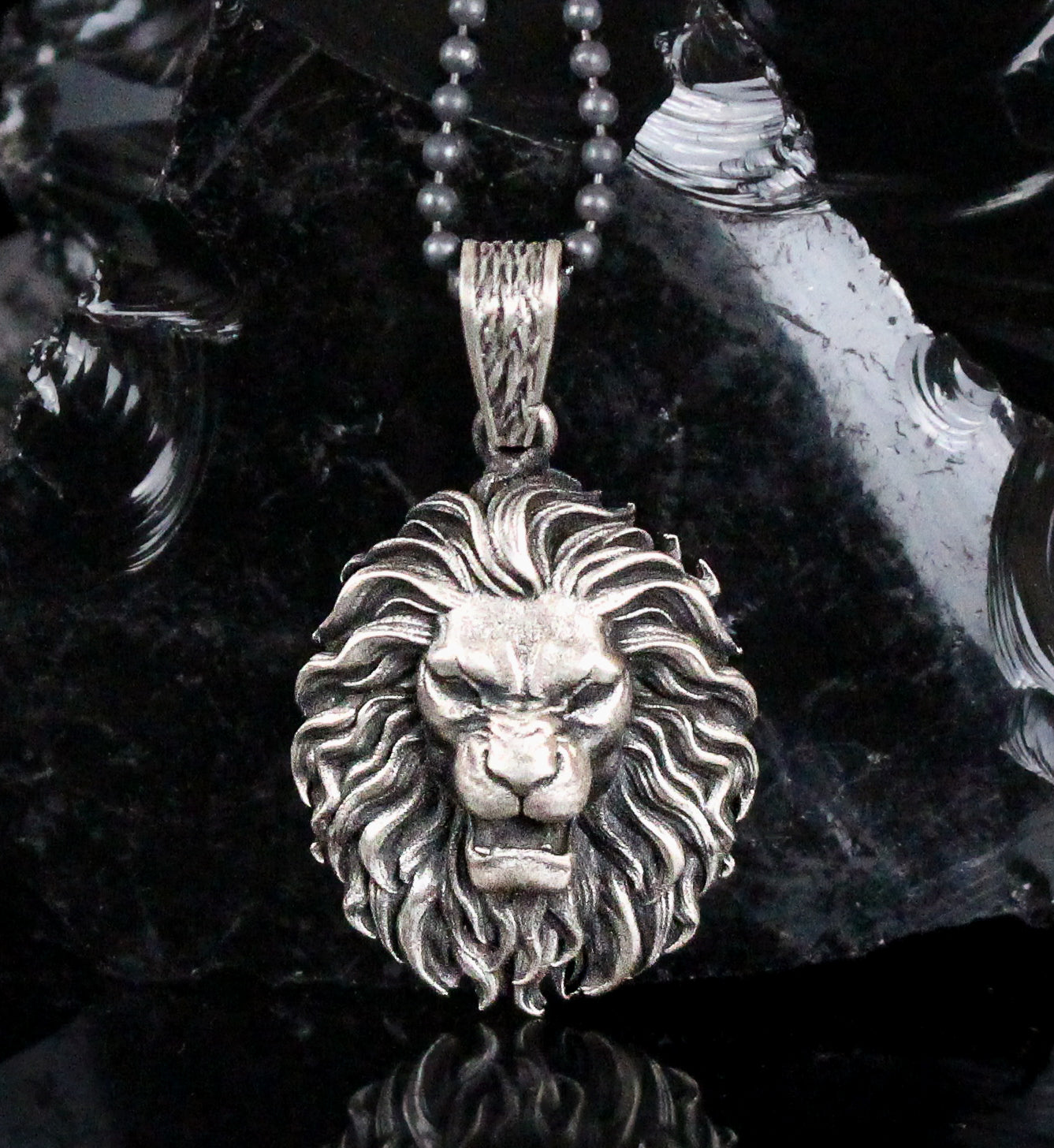 Bold Roaring Lion Necklace in Sterling Silver | Majestic Design Pendant Necklace for Men