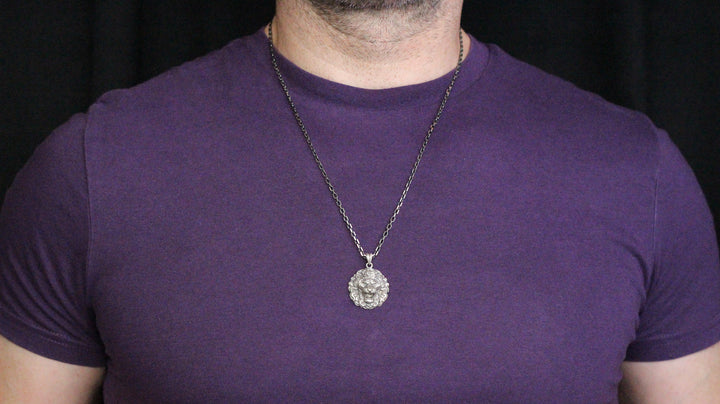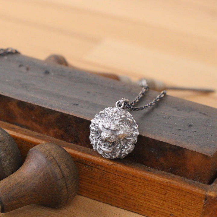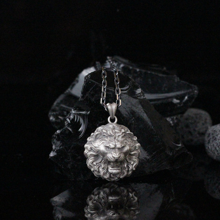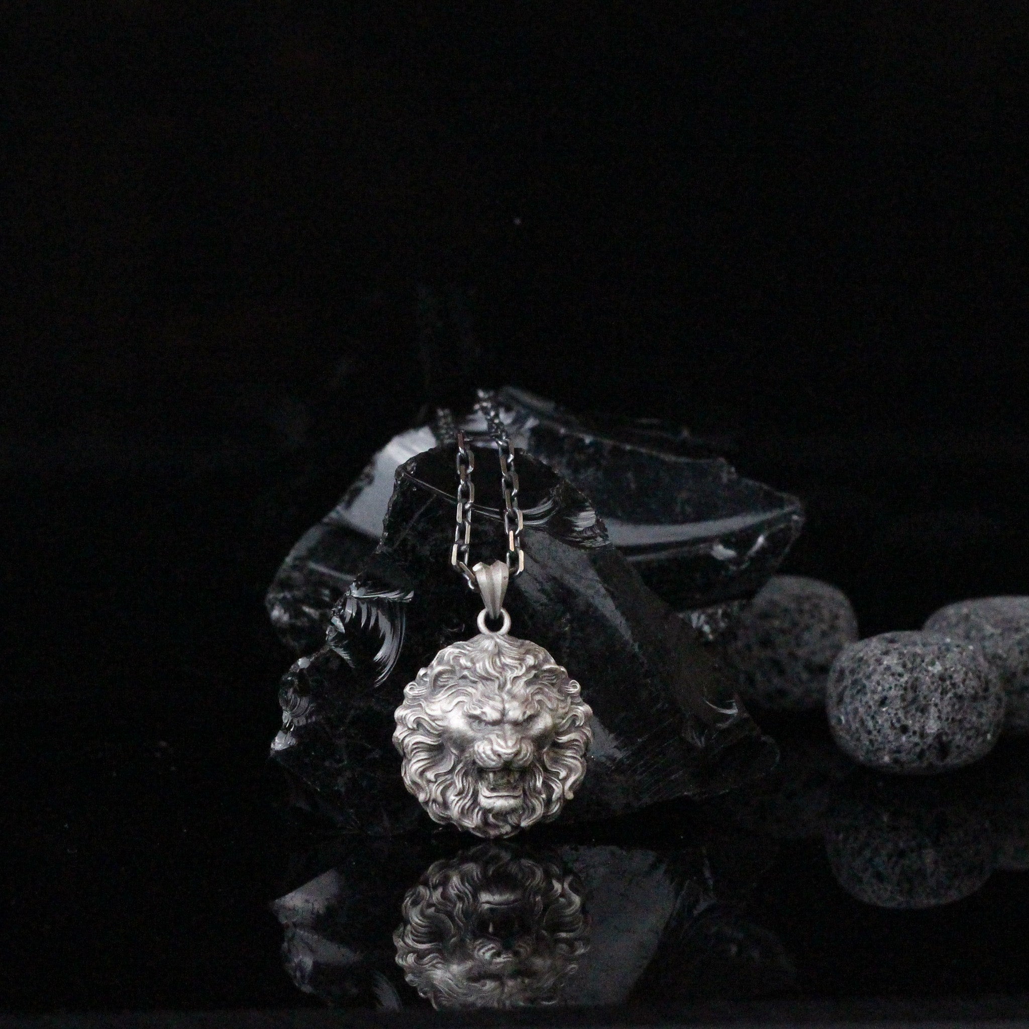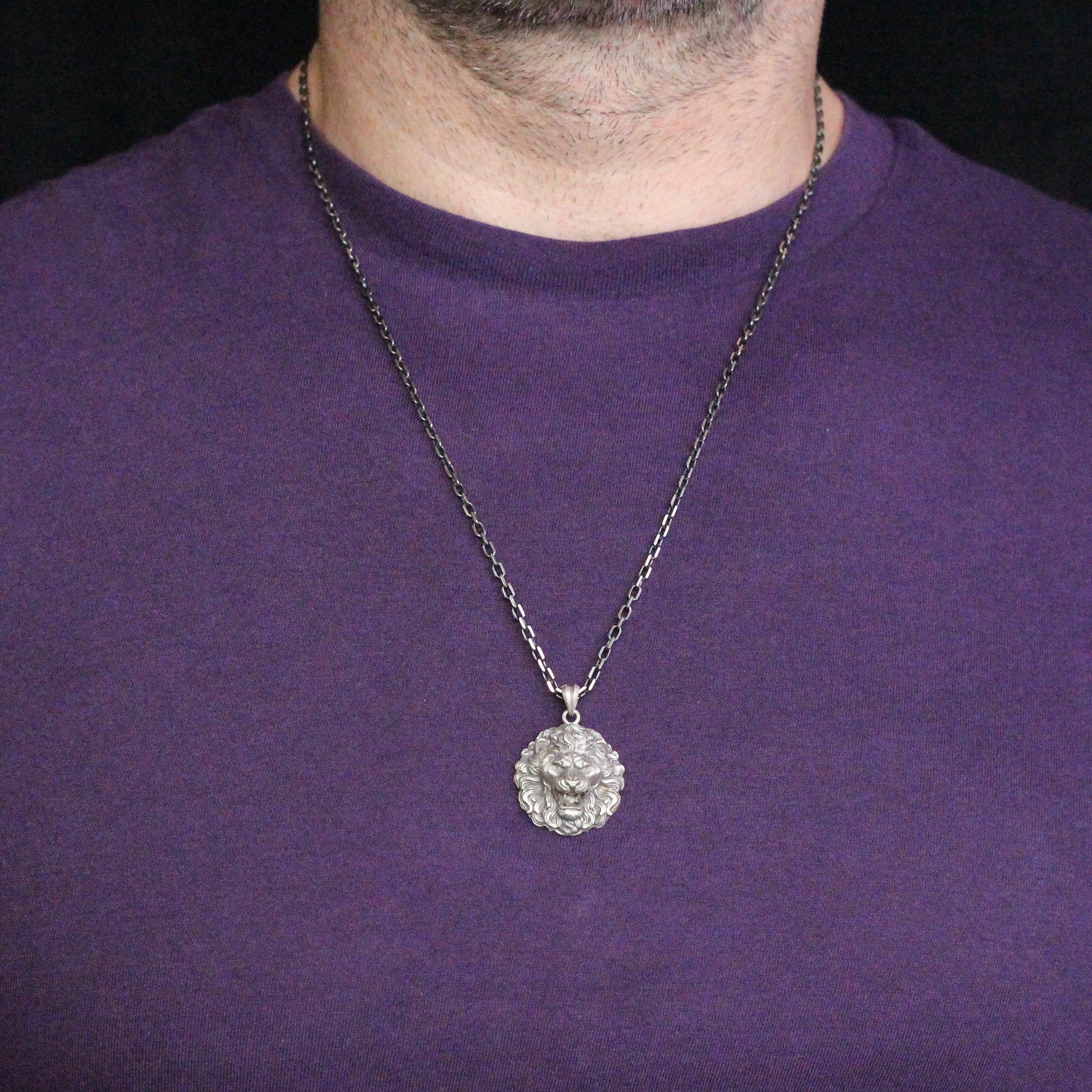 Large Roaring Lion Head Necklace for Men, Sterling Silver African Lion Necklace
