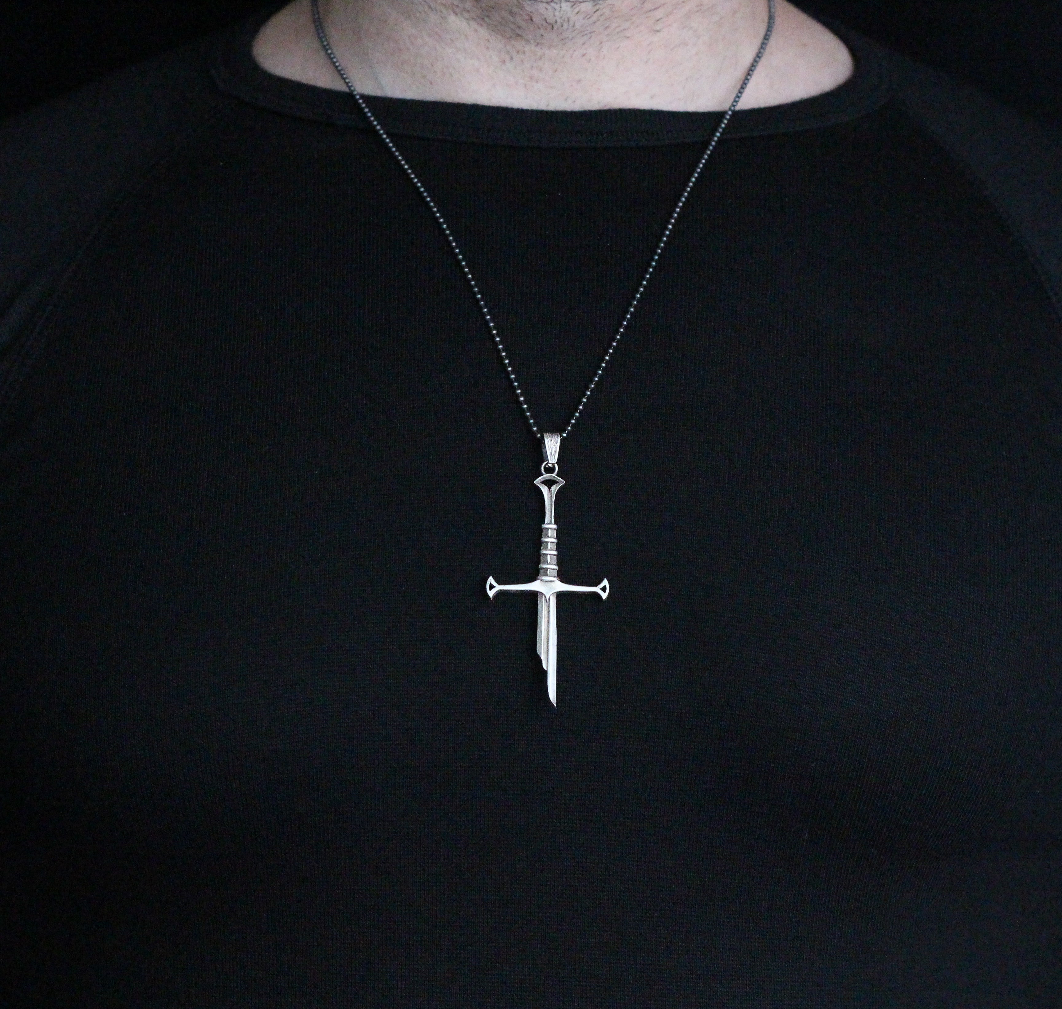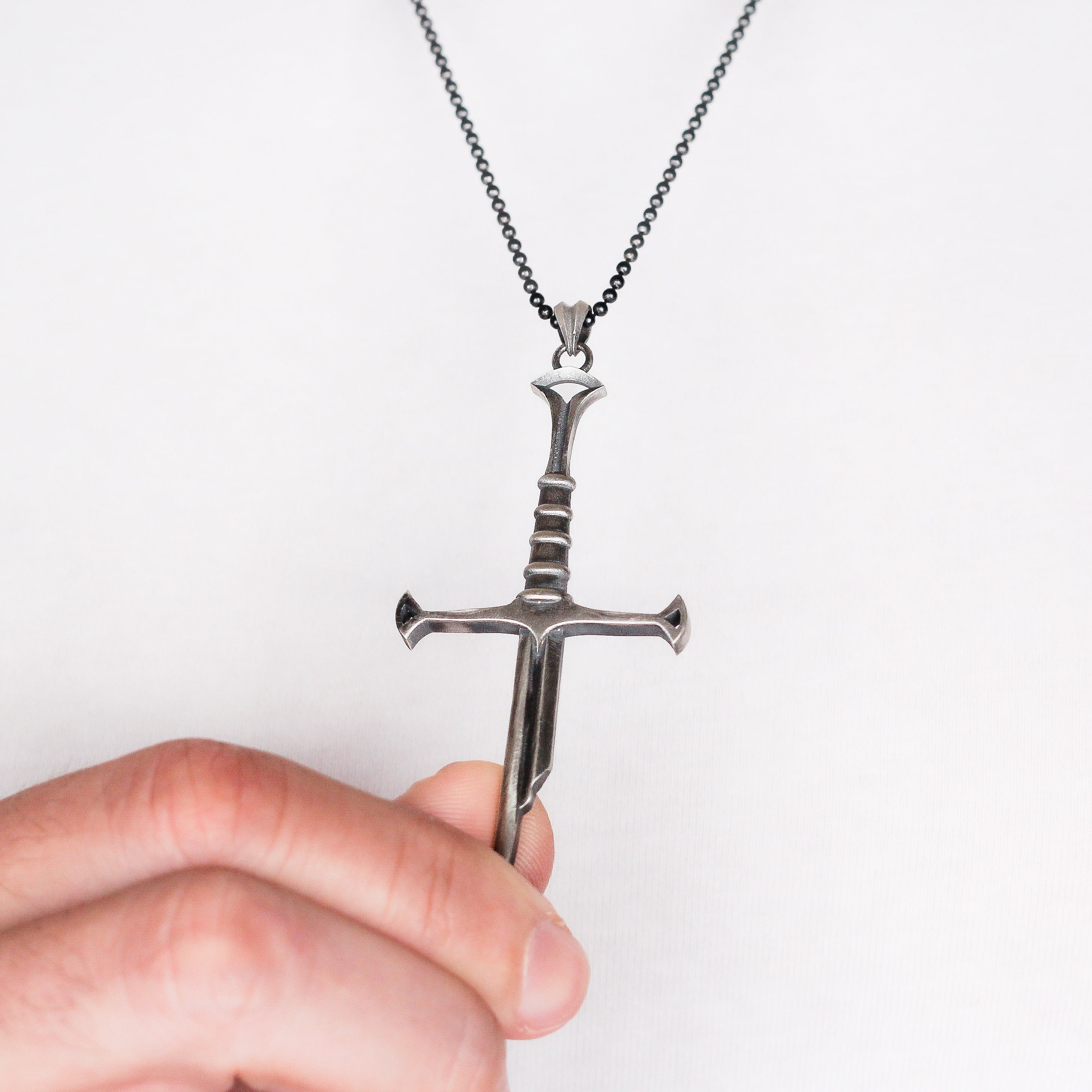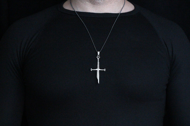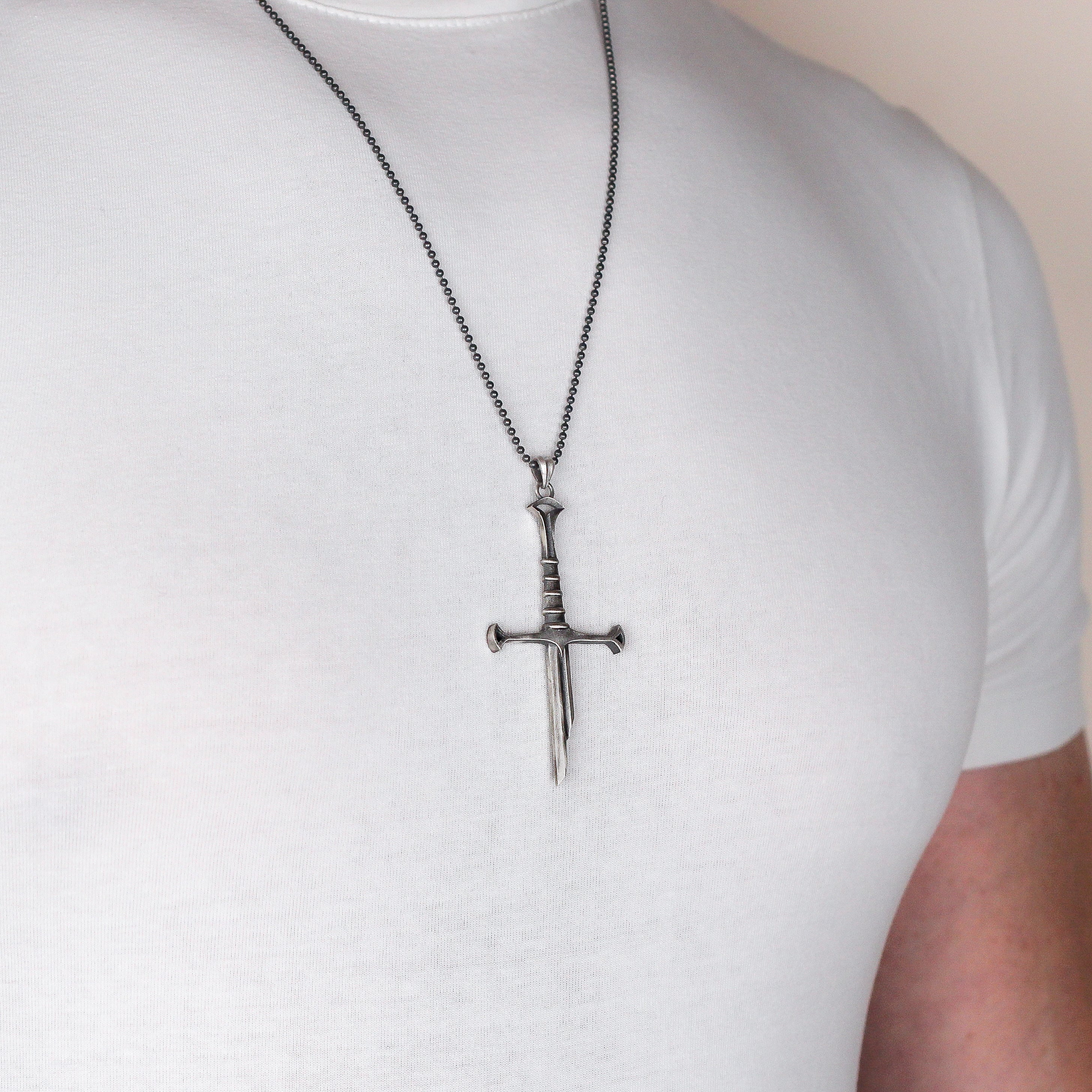 Broken Sword Necklace | Narsil Holy Sword Pendant, Medieval Fantasy Dagger Necklace for Men