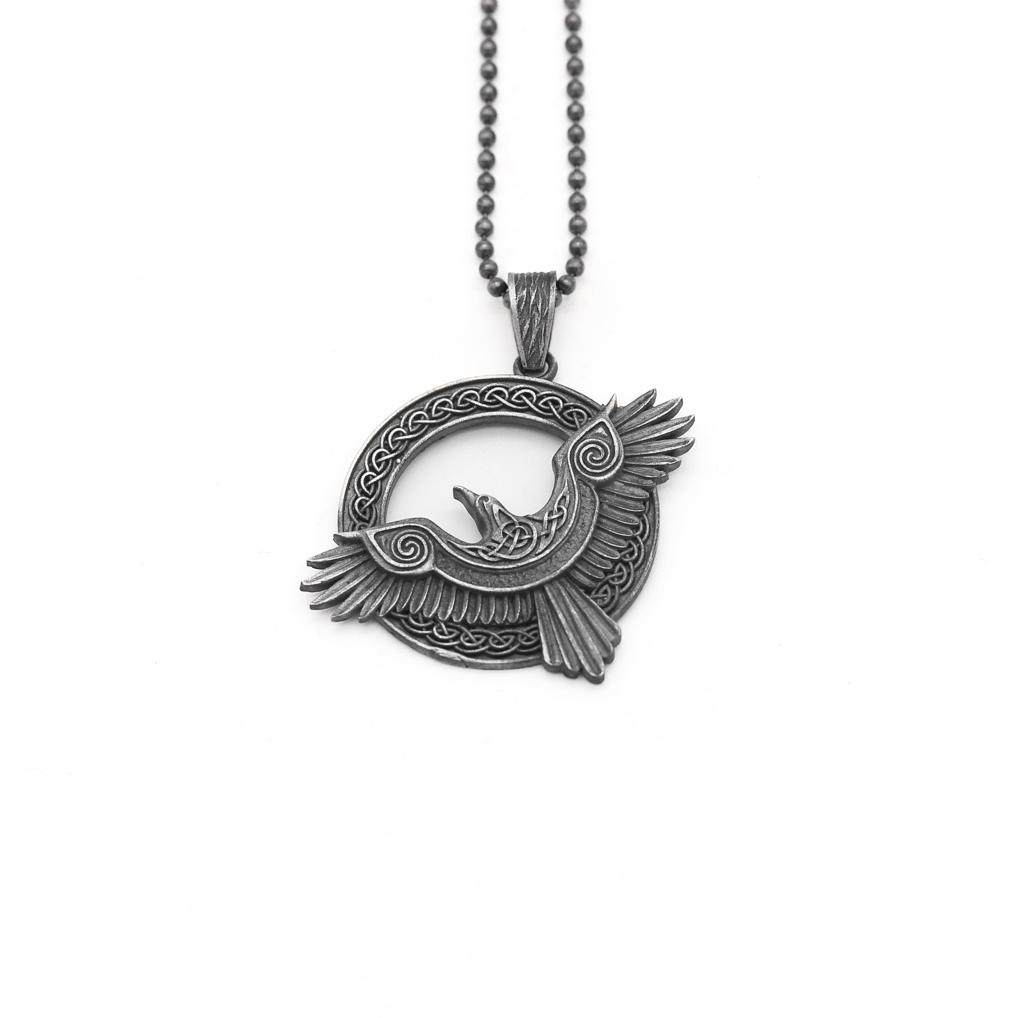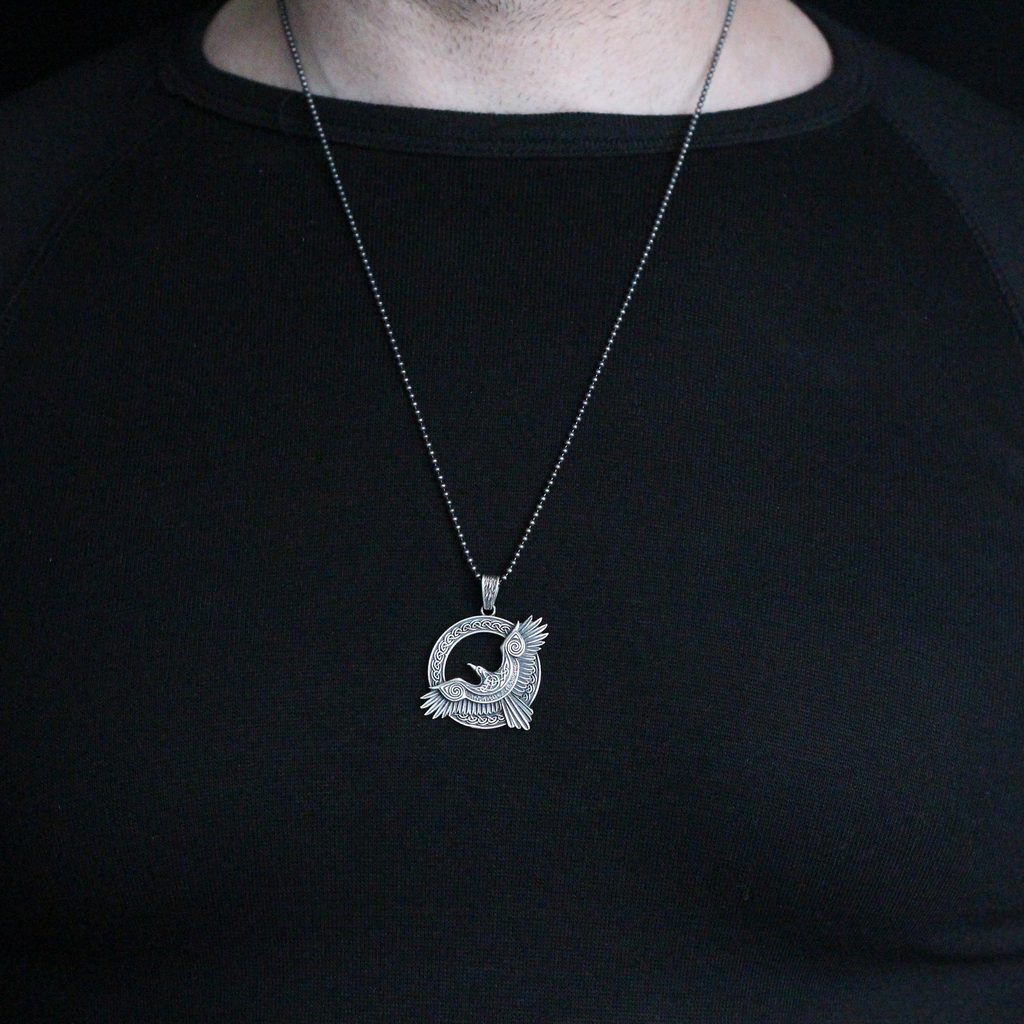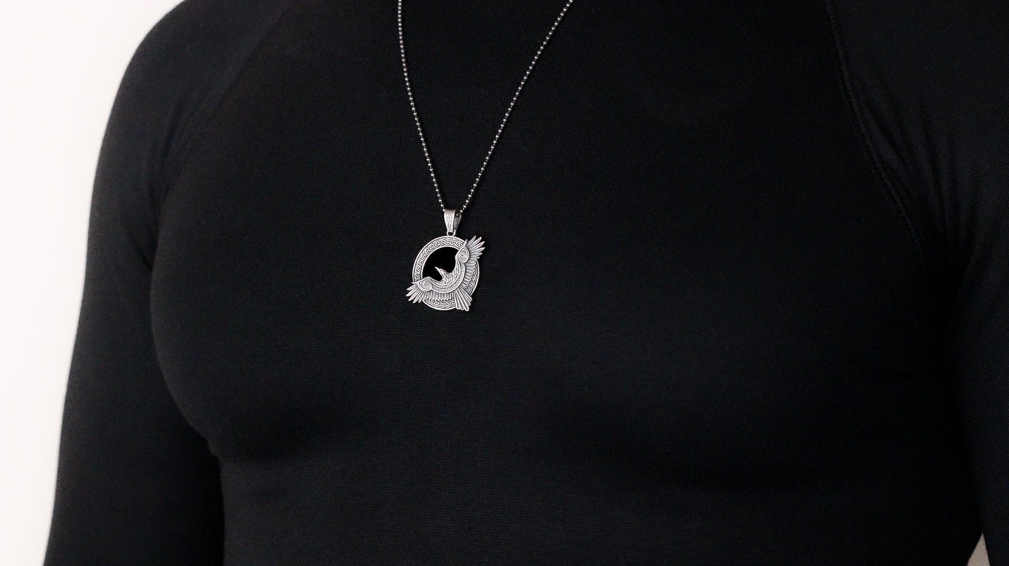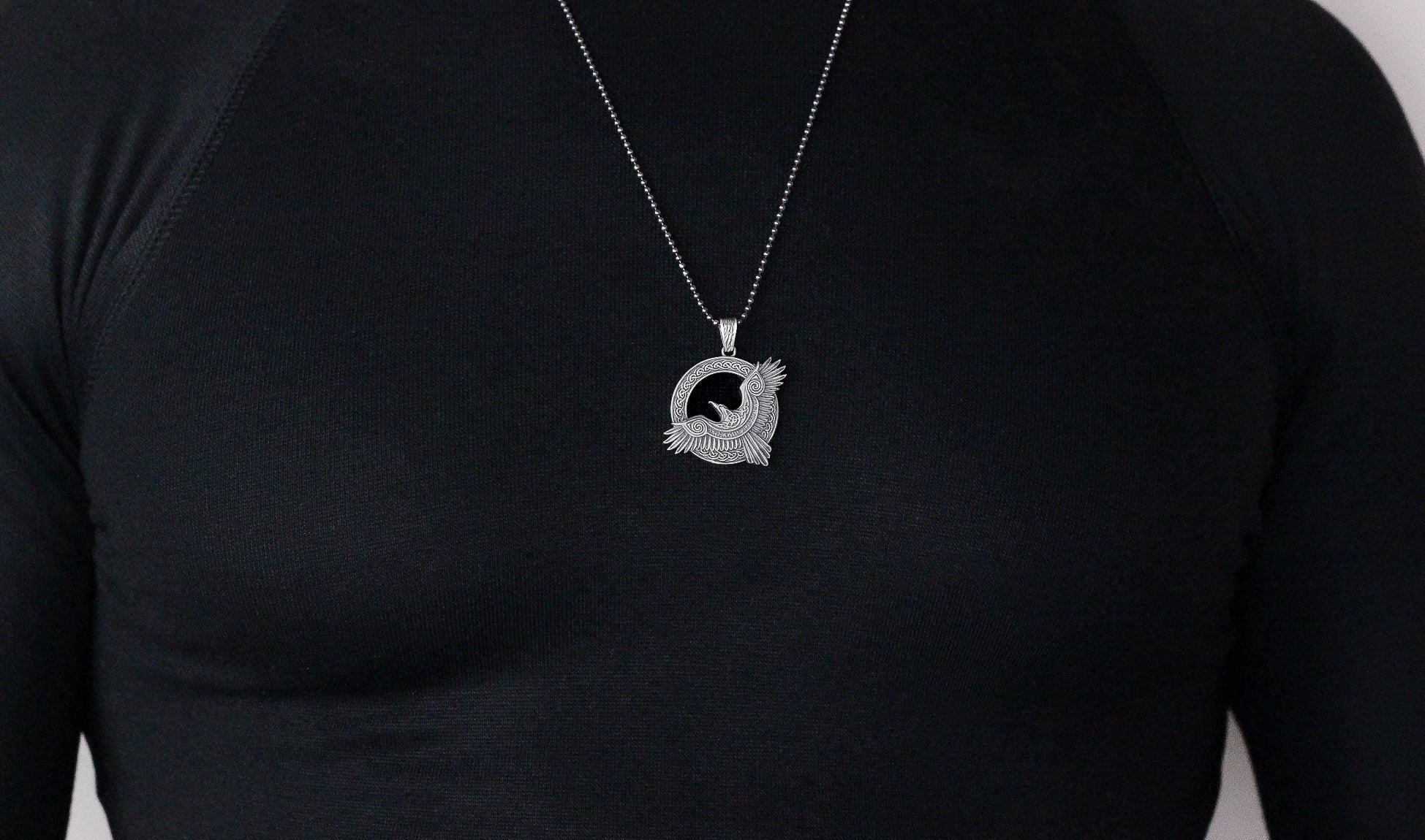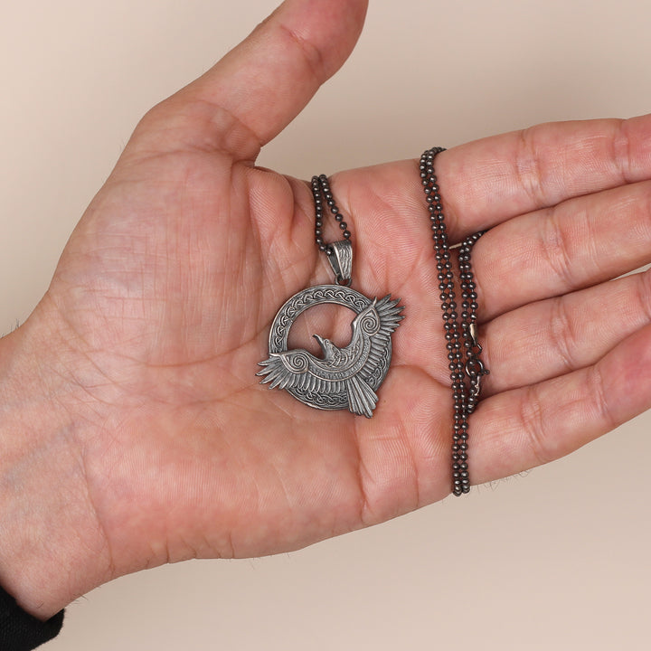 Viking Raven Pendant Necklace in 925 Sterling Silver | Norse Mythology Charm Necklace