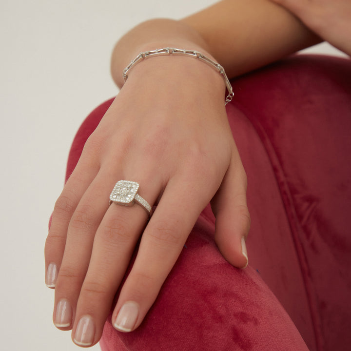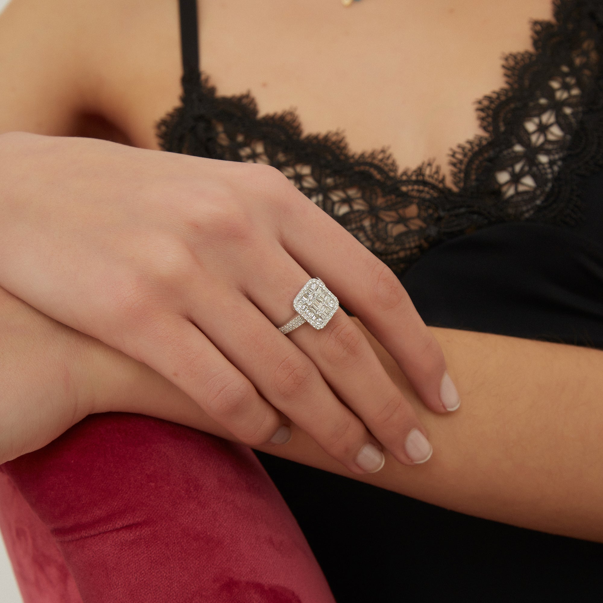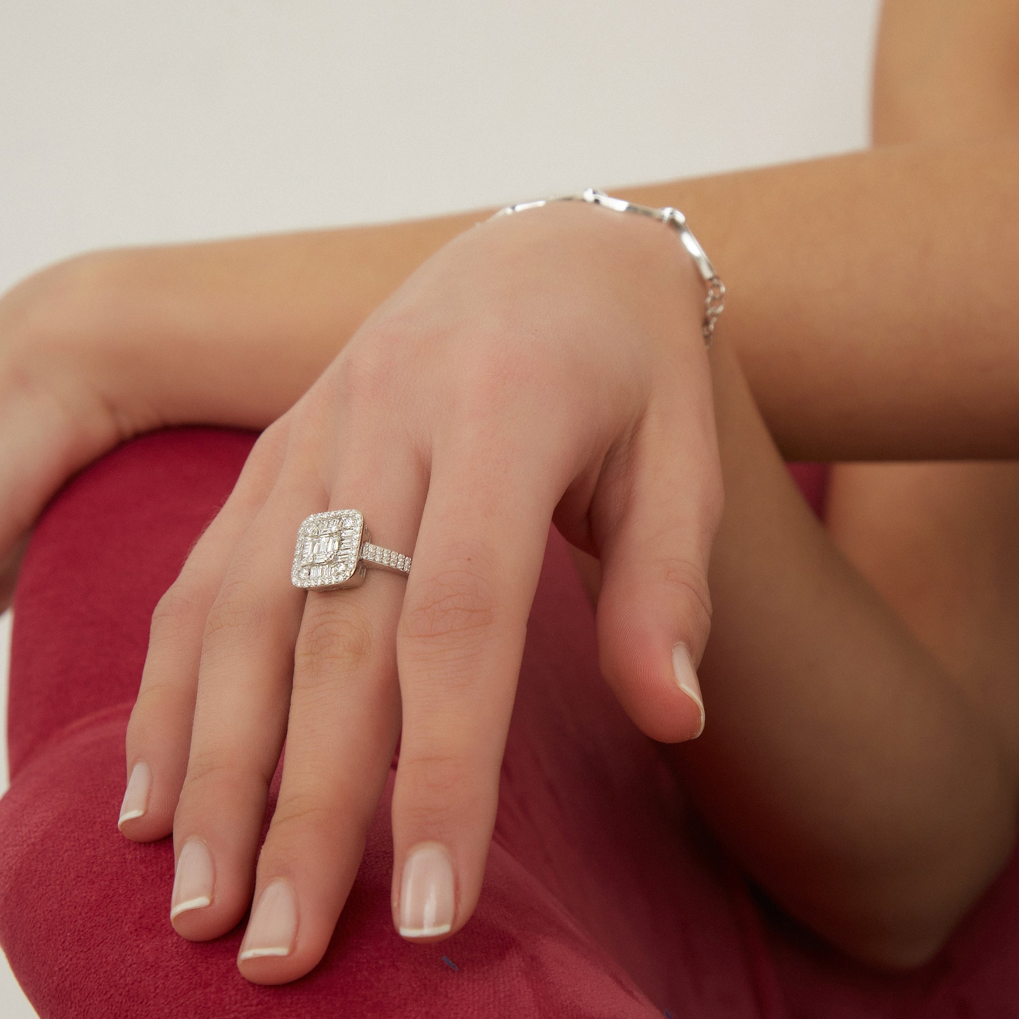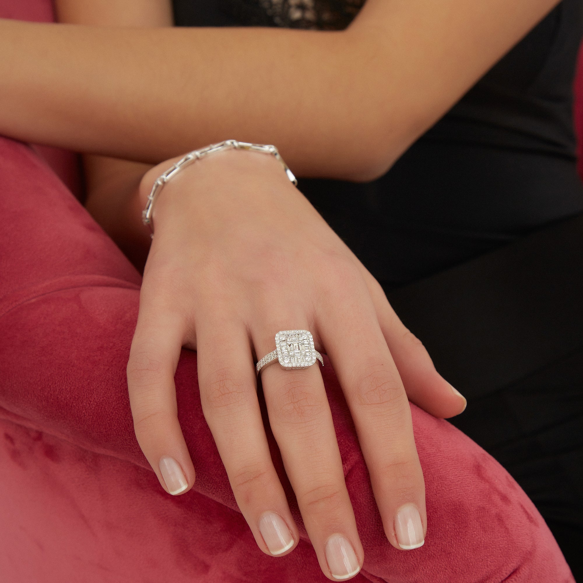 Celebrate your love story with this Exquisite White Gold Diamond Ring, a masterpiece of elegance and sophistication. Made from premium 8K or 14K solid gold, this breathtaking ring features a dazzling square-shaped diamond cluster, perfect for engagements, weddings, or anniversaries.