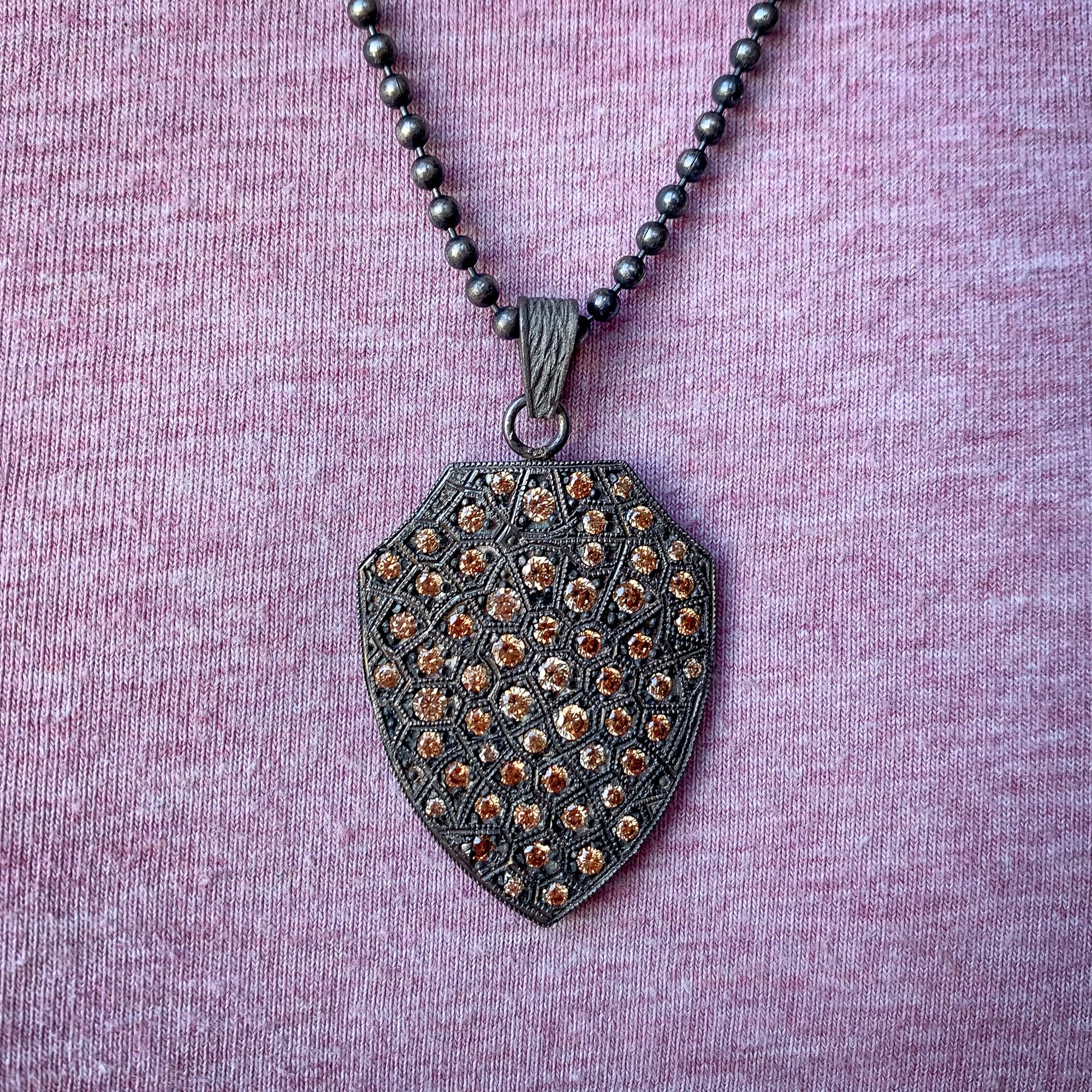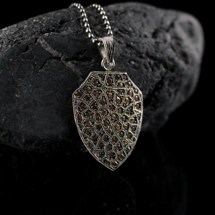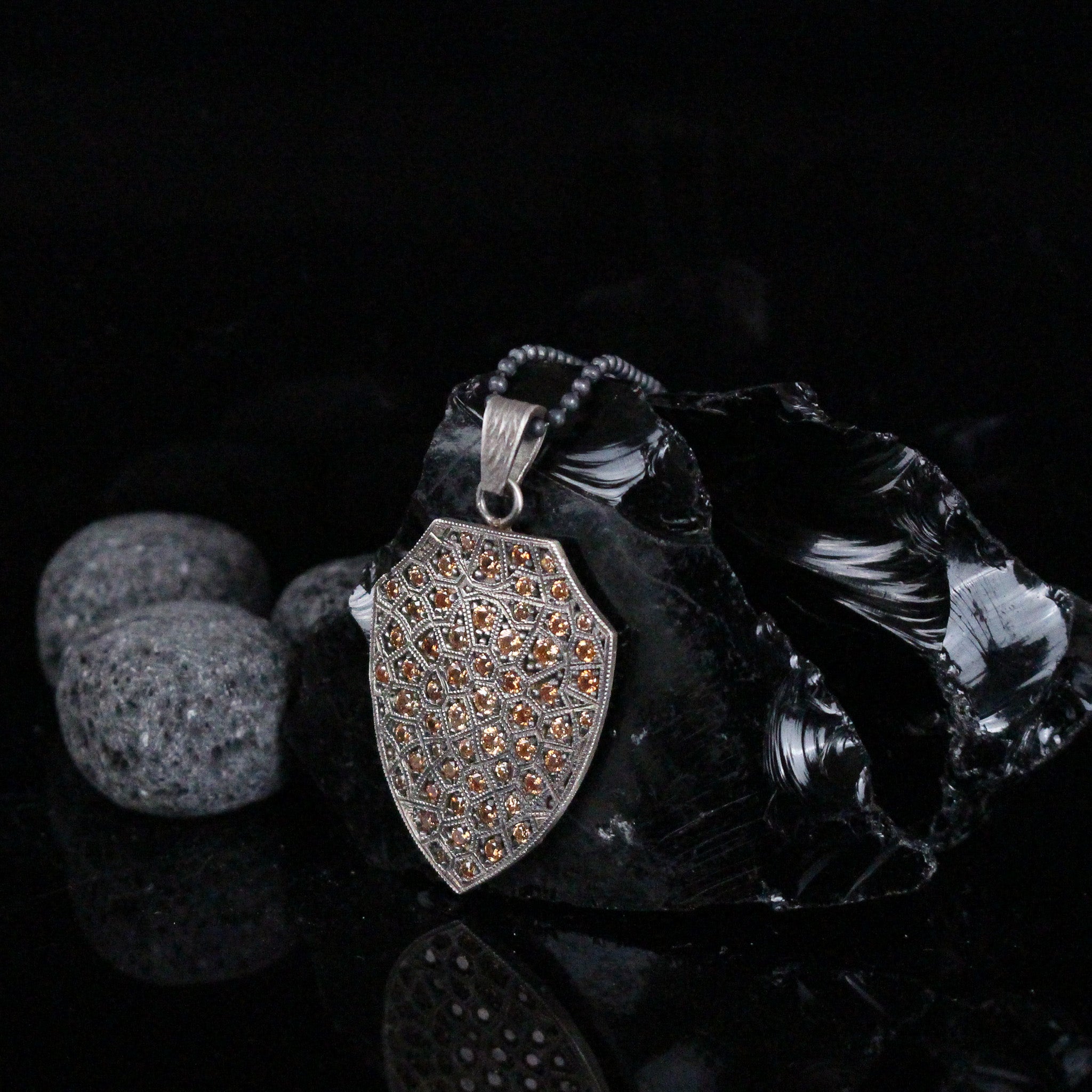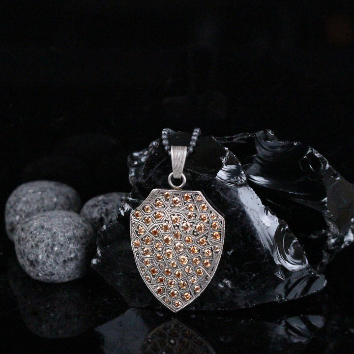 Yellow Stone Shield Pendant Necklace in Sterling Silver | Medieval Warrior Shield Necklace