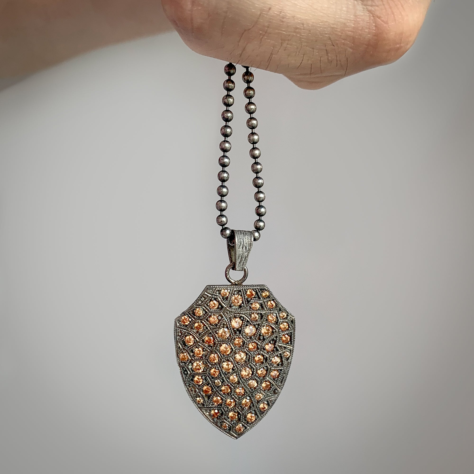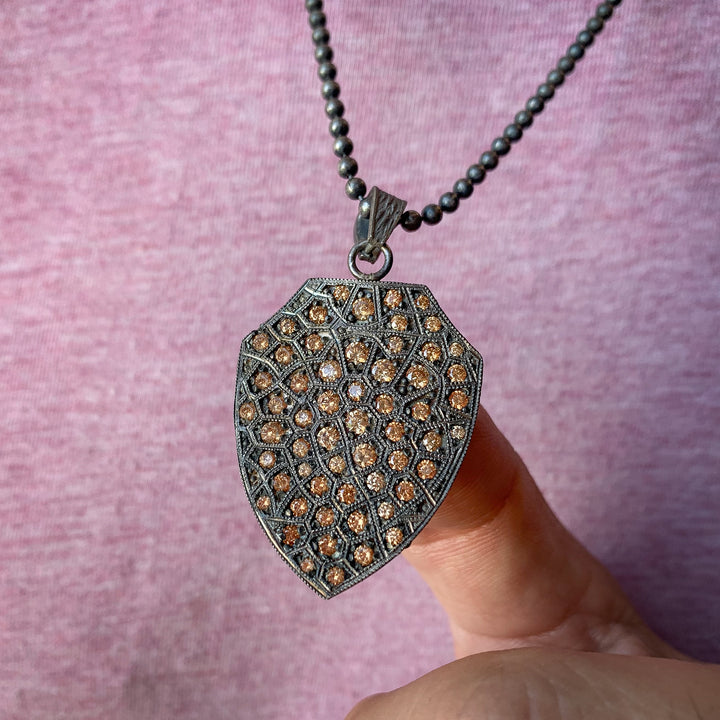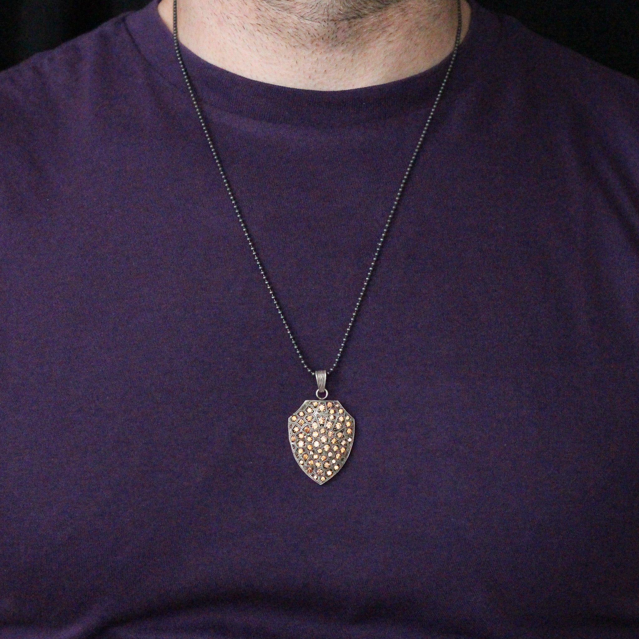 Yellow Stone Shield Pendant Necklace in Sterling Silver | Medieval Warrior Shield Necklace